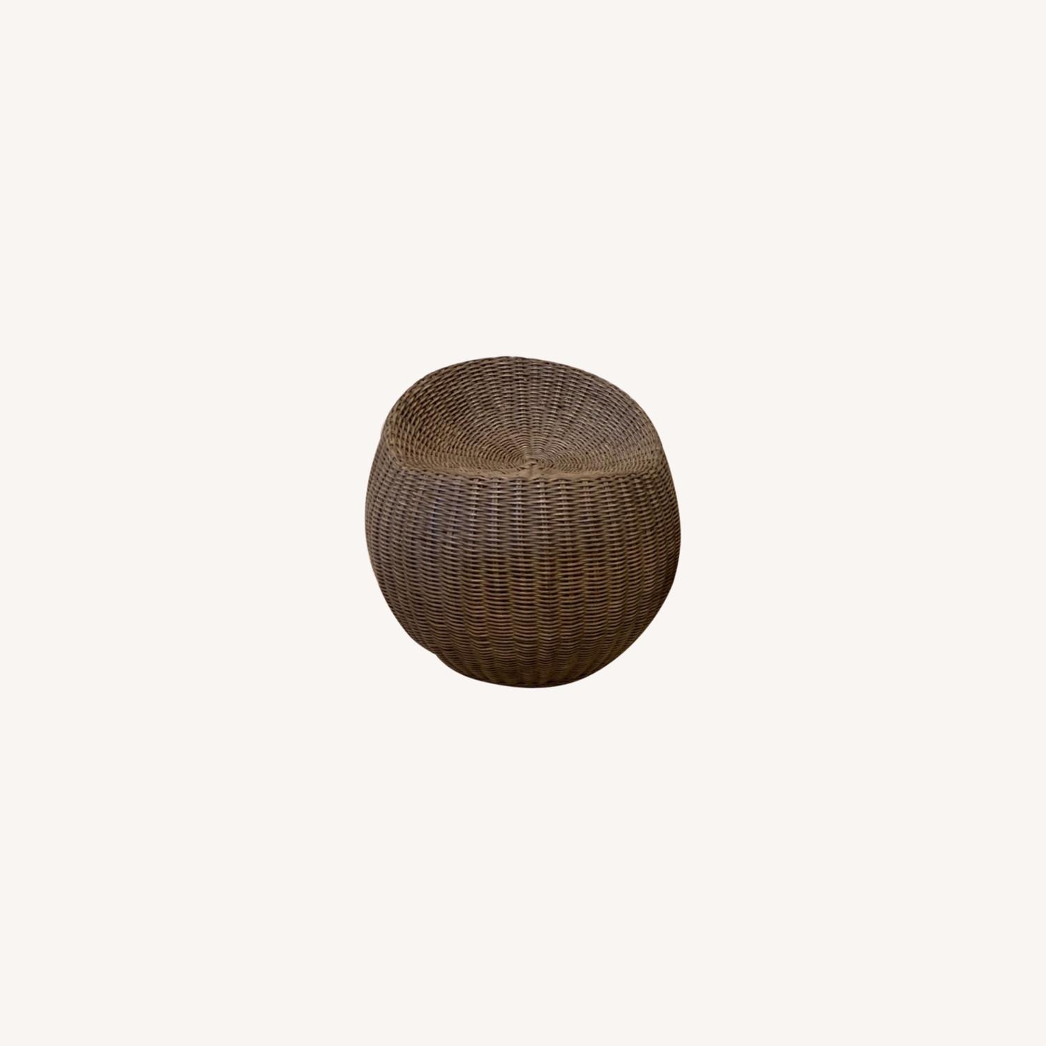 Seller's Notes:Gorgeous Palecek rattan woven chairs over a metal frame. 360° swivel stool. Like new condition. Finish: Mushroom Dimensions: Overall: 25.5" d x 23" h Seat Height: 18" h Weight: 30 pounds