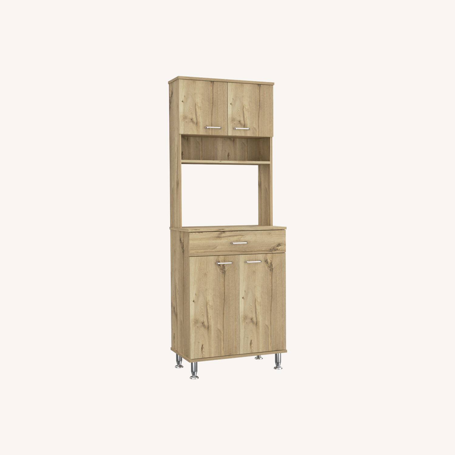 Seller's Notes:"The Piacenza Pantry is a kitchen organization station that frees up valuable counter and cabinet space, holding your microwave, coffee maker, and other small appliances. This kitchen pantry also features a spacious drawer and hidden storage behind two lower panel doors. The hutch features a top cabinet with two doors and a shelf inside. The counter is 23.6 wide by 13.9 inches deep. Making it ideal for most Microwaves or small appliances. The bottom drawer works great for utensils and the large two-door cabinet below is perfect for larger objects. This product has adjustable metal legs to provide stability, designed in elegant light oak Manufactured Wood. Dimensions: Height: 45” Width: 33” Depth: 13,70“ Furniture Type: Ready to assemble (full assembly required) Certifications: CARB phase II compliant – TSCA Title VI Compliant Warranty: 1-year warranty coverage in wooden parts- 1-year warranty coverage in hardware pieces since its manufacturing date found in the lot number printed in the product box Shipment details: Free shipping to the 48 contiguous states - delivery time: Between 2 and 5 days depending on the customer's location, season and weather factors. Other details: This product does not include decorative or background elements; Check that the box is in good condition, well packed and check with the help of the manual that the corresponding parts have been included; For more information regarding warranty, shipment details, cancellations, returns & replacement parts go to the bottom section of our website to learn more; Installation & Assembly Instructions included."