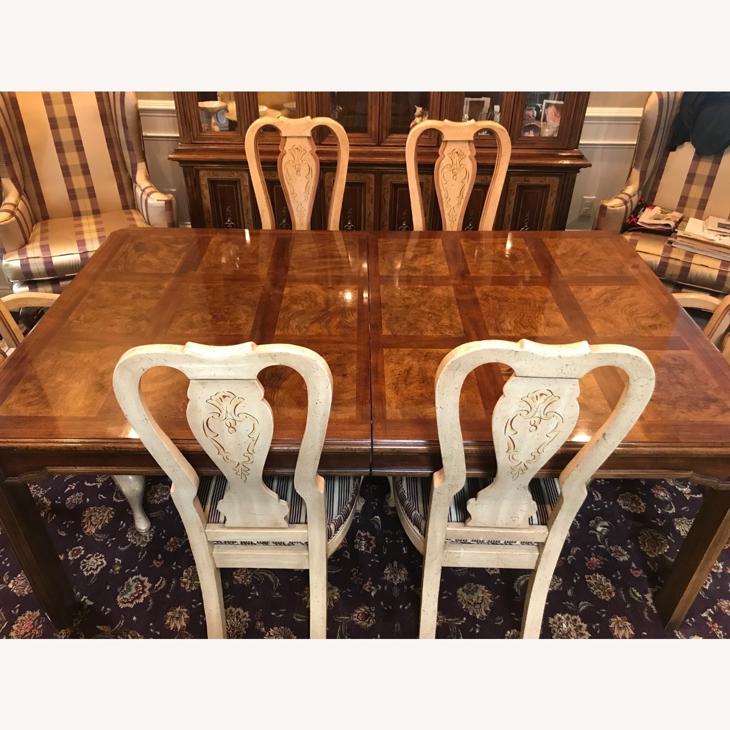 Seller's Notes:This beautiful &unique Parsons dining table is part of a dining set which includes Server & 2 pieces 6 panel beveled glass doors(upper piece)