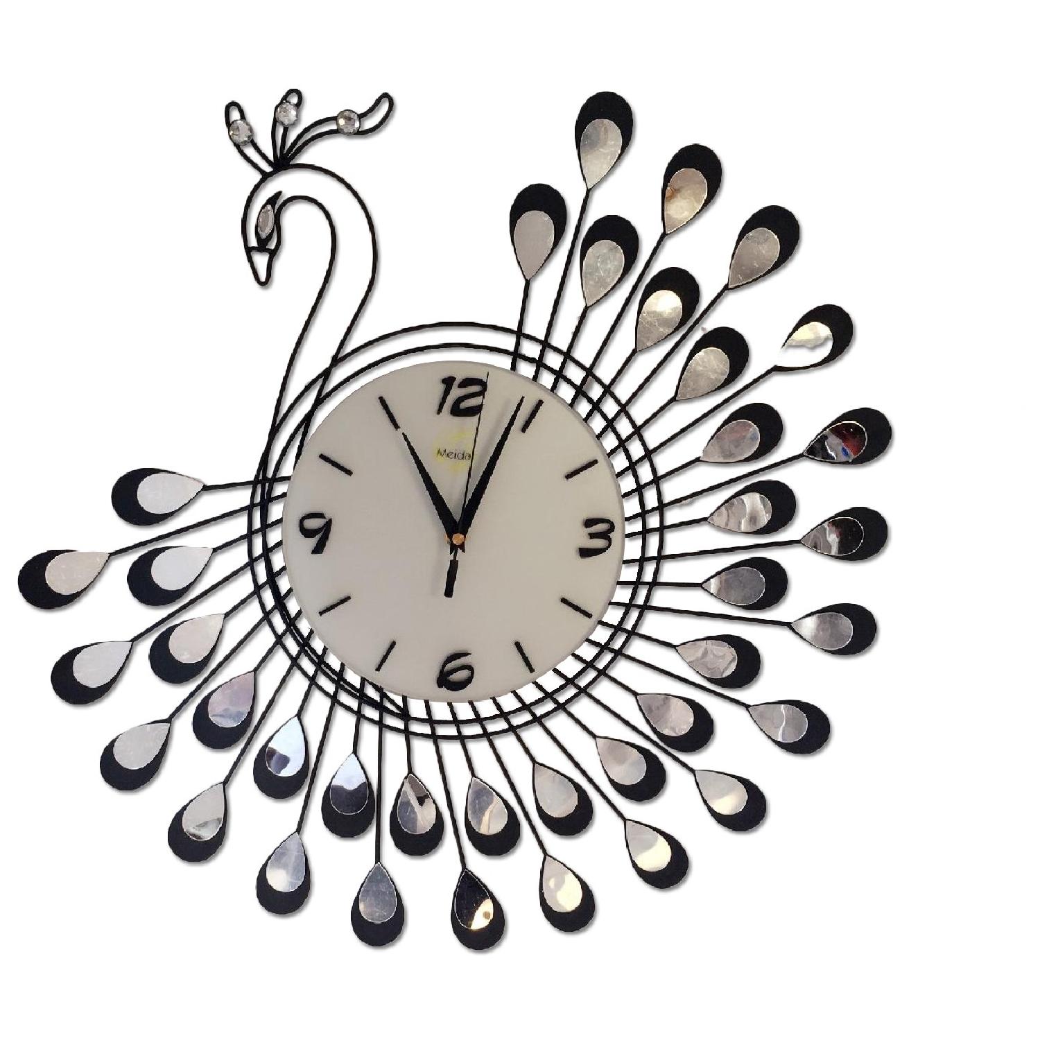 Peacock Metal Silent Wall Clock Mirror Decoration