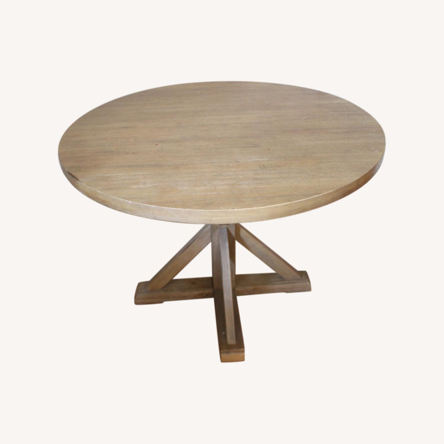 Seller's Notes:Solid pine, white-washed finish and natural visible wood grain. Ideal for small dining spaces, it seats up to four people.