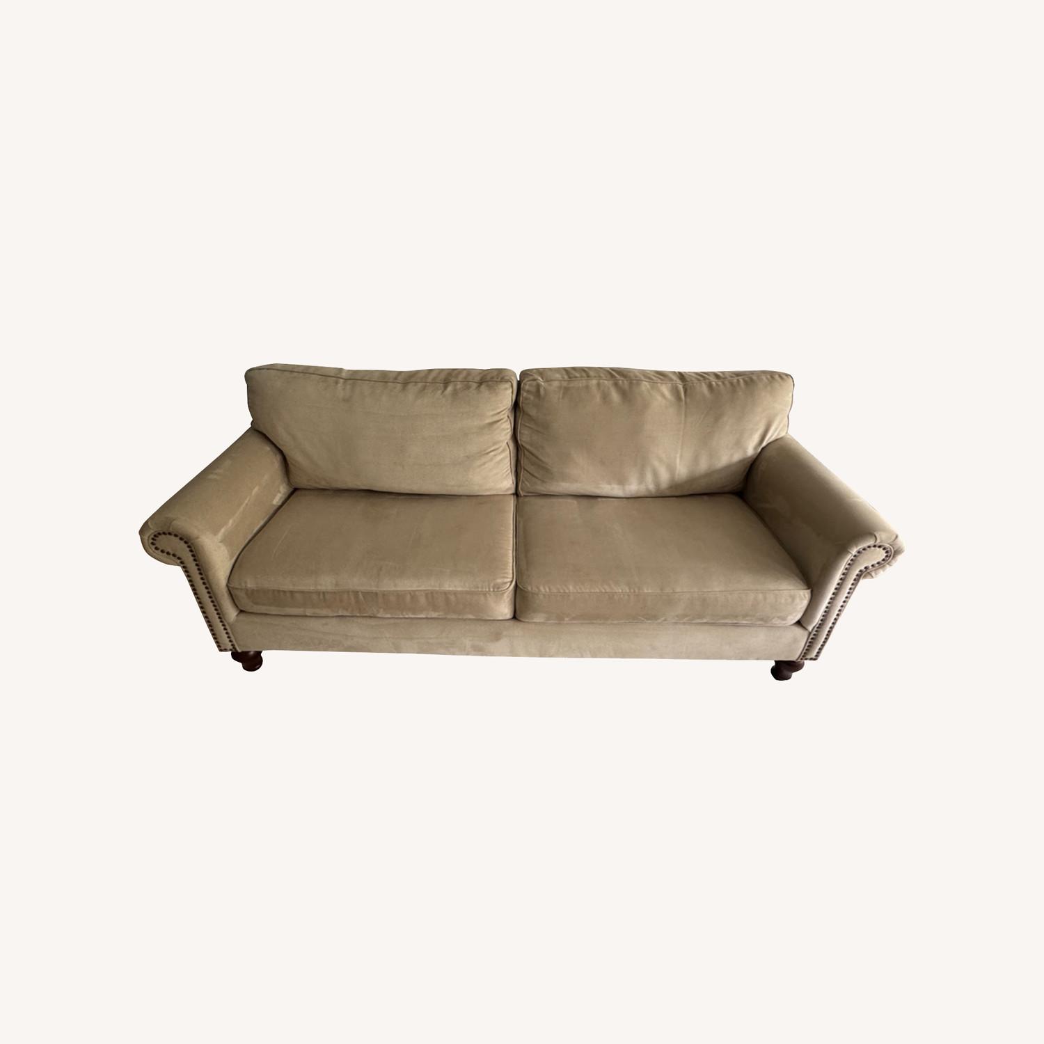 Seller's Notes:Pier 1 Couch Sofa Gently used no pets or smoking home. Description Pier 1 sofa. We had it in our formal living area, barely been used. Originally bought for 1000. No stains /tears or rips. Really comfortable just needing a larger couch. Material is almost a suede Size: 80x35 Condition: Good Brand: Pier 1 Imports Color: Beige