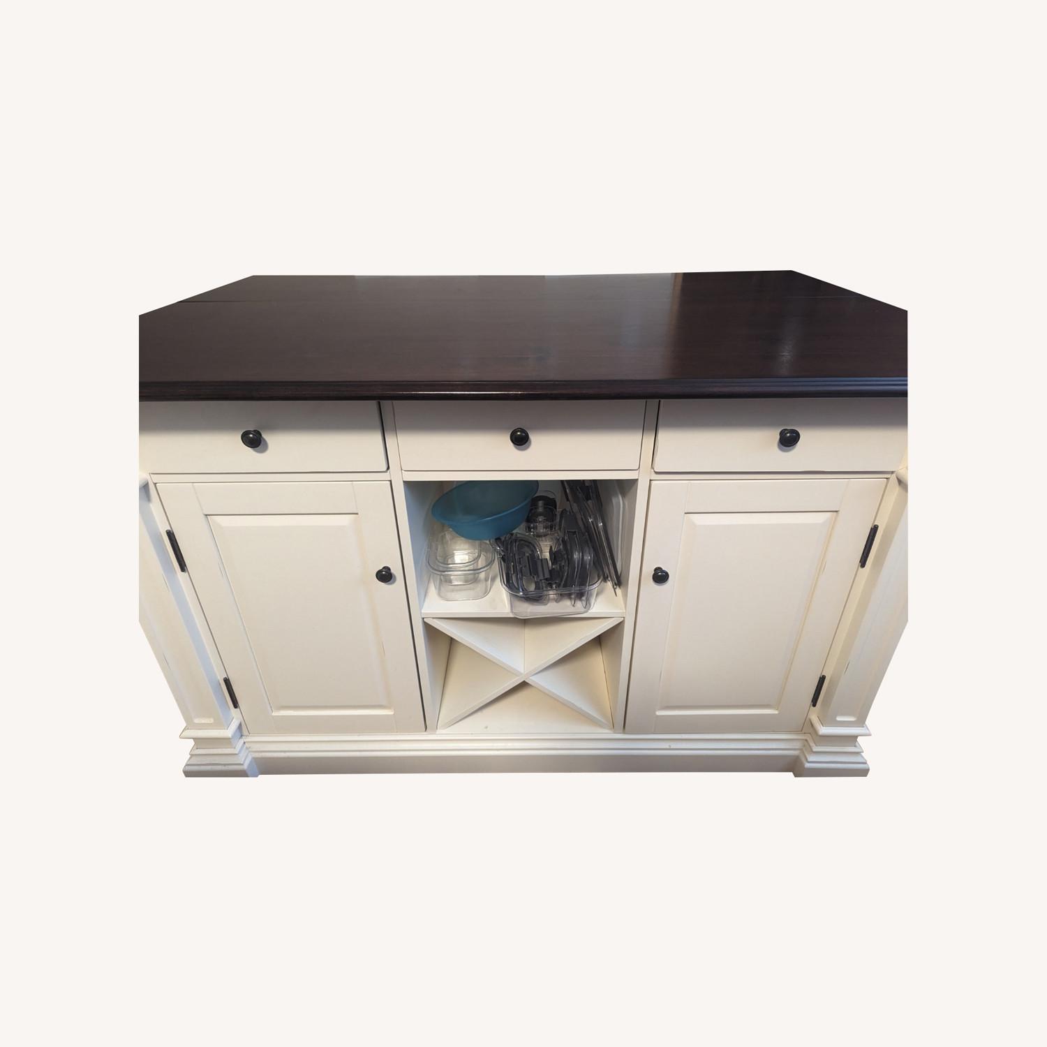 Seller's Notes:Gently used counter height table with matching counter height stools. Item was purchased in order to maximize space and organization. The cabinets are ample enough to store small appliances, wine bottles, utensils and dinnerware. Helped me save a lot of space in my apartment. When not in use, the table does fold in half which allowed to have some more open space in the living area. Great space saver. Allowed my little family to feel closer to one another while eating, playing board games or doing homework. Awesome purchase for me. Served it's purpose well and it will serve a great purpose for it's new owners. Also, the item is still under warranty for just under 2.5 years.