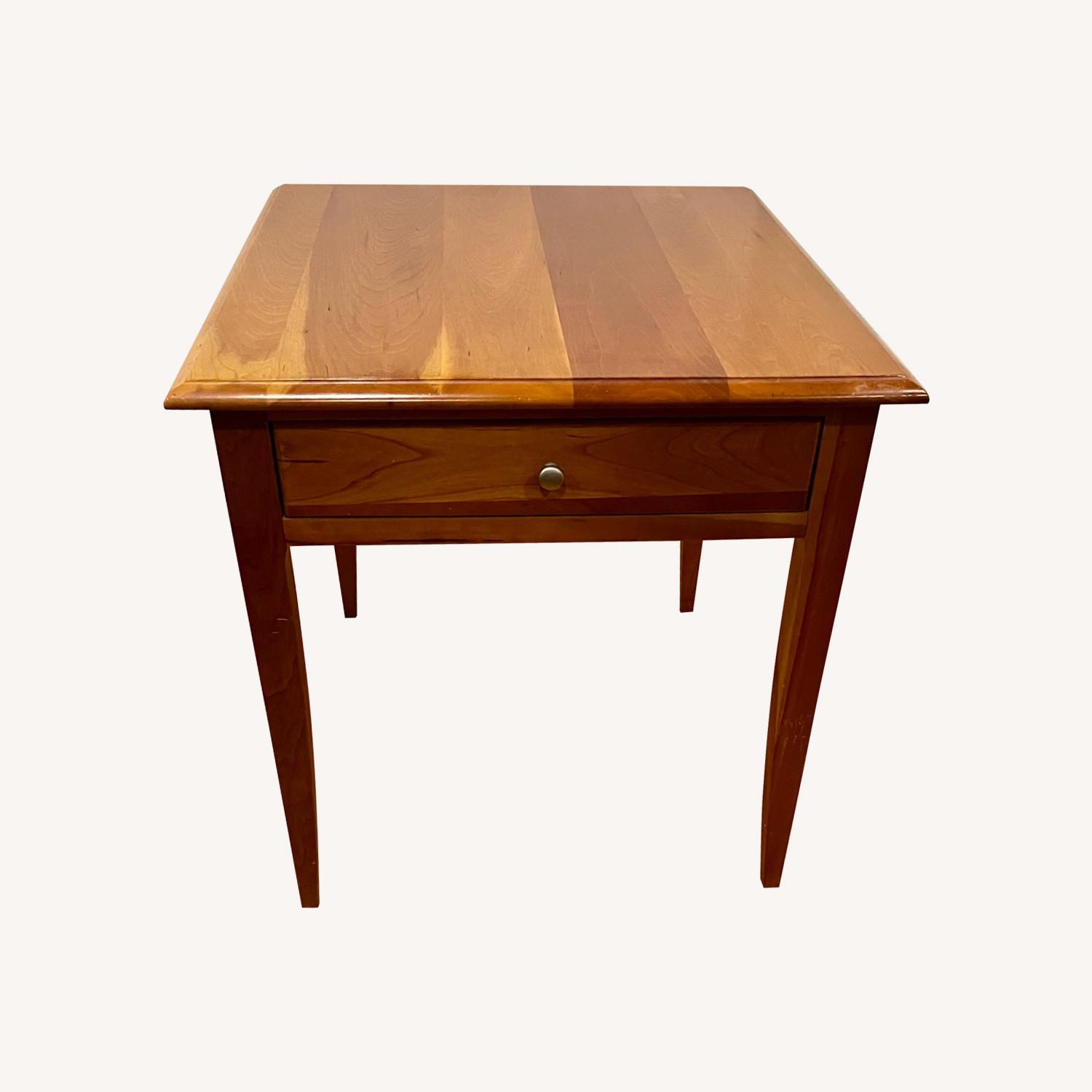Seller's Notes:Pennsylvania House end table with storage drawer. Solid wood, fine craftsmanship. Very good condition. Minor scratches on leg (see photo). Original owner from nonsmoking home.