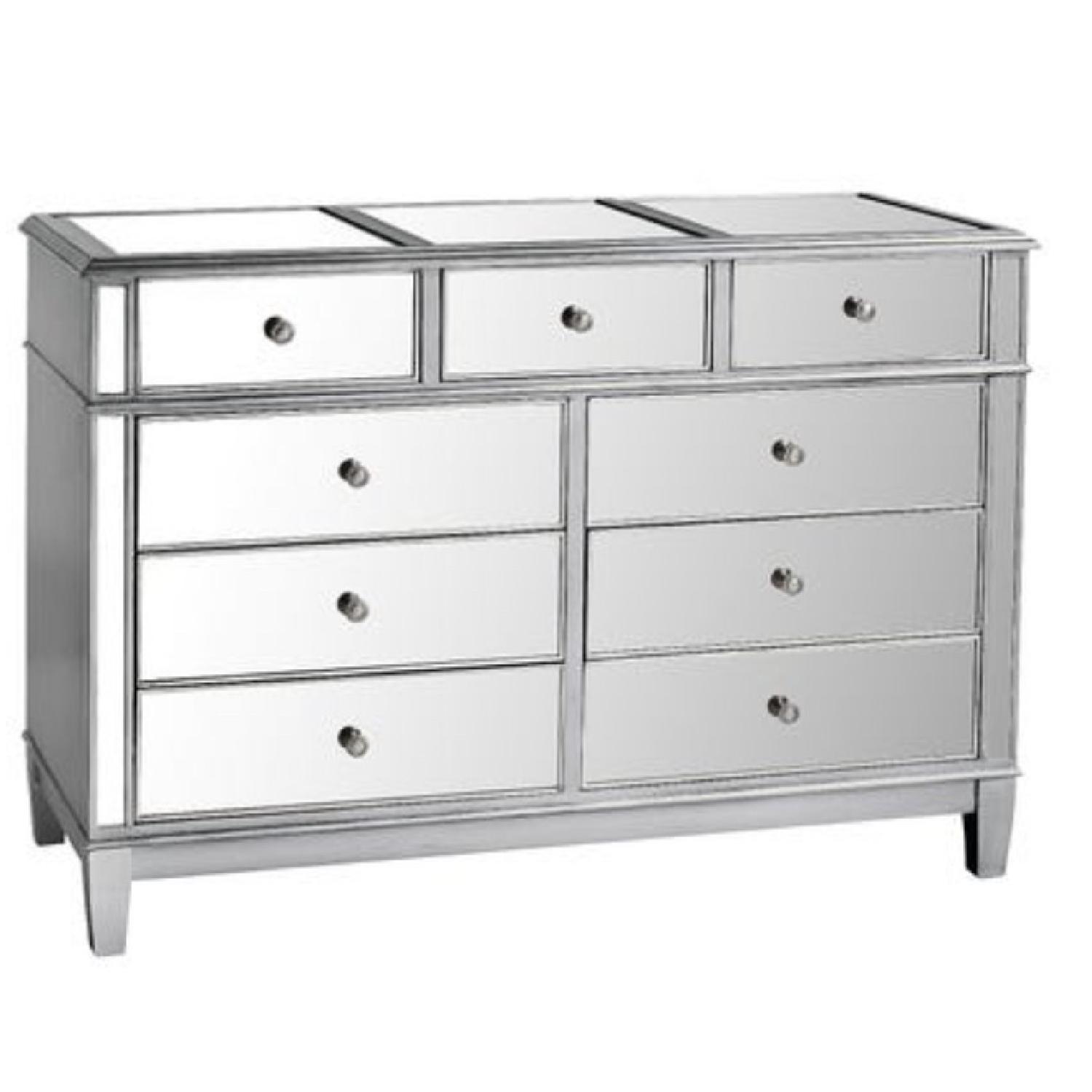 Seller's Notes:As glamorous as any star from Hollywood's Golden Era, yet as practical as we can make it, our Hayworth Dresser is all about functional fashion. Handcrafted of durable hardwoods, covered with beveled mirrored surfaces, it gives you nine drawers' worth of generous storage space. You'll give it rave reviews. Has a minor crack in the frame that is not noticeable. This is a very sturdy and heavy piece of furniture.