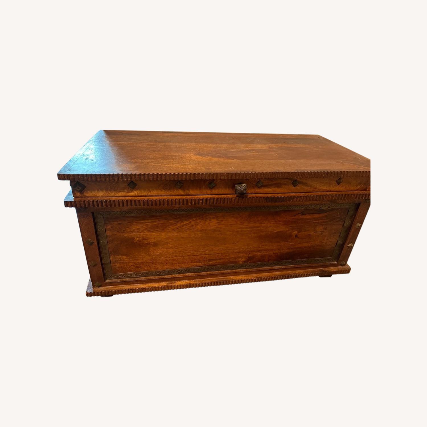 Pier 1 Imports Handcrafted Brass Detailed Mango Wood Trunk