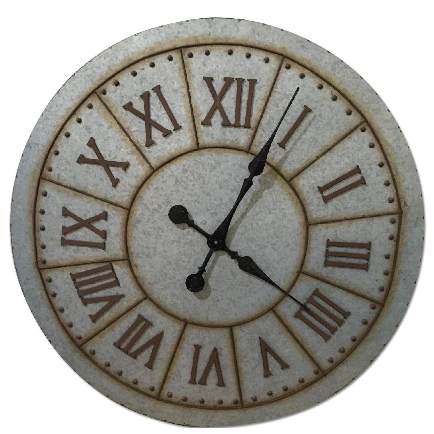 Seller's Notes:Industrial wall clock purchased from Pier 1. No longer available online. In brand new condition. 32 inches diameter; need one AA battery to operate, included in your purchase. I have limited wall space in my new apartment so I have to sell it.