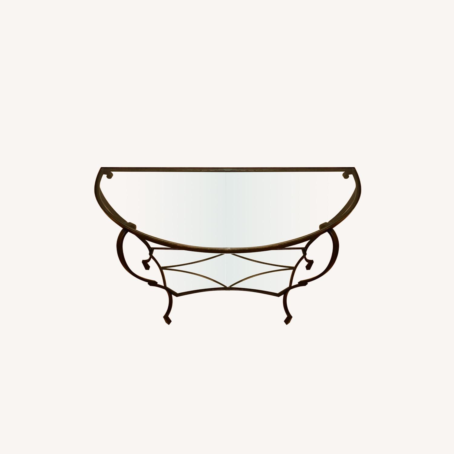 Seller's Notes:Beautiful Foyer Table Perfect, mint condition! No defects! It’s very useful and it’s my preferred piece of furniture Dimensions: 40 in width, 30 in height, 16 in depth. The metal part is aged from fracture Pick up only.