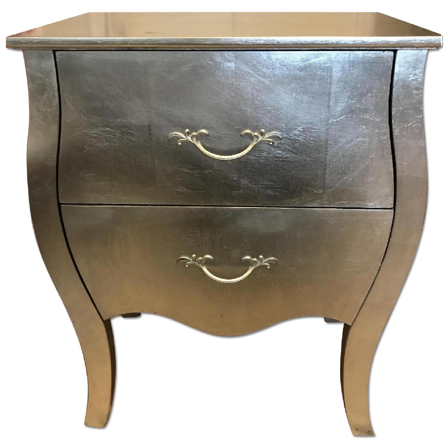 Seller's Notes:Pier 1 Imports Camellia Bombe Chest originally priced at $250. Minor scratches that are practically invisible because of the silver finish. Selling because I moved and it does not fit in my new bedroom. Can be used as a nightstand, dresser, or end table.