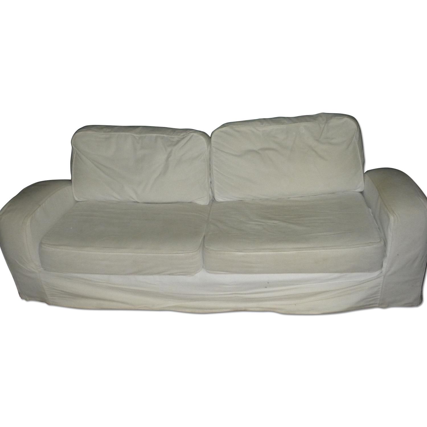 Seller's Notes:LAST CHANCE Sofa has a white sleep cover that would greatly benefit from cleaning and would look like new. There are no tears. Sofa is upholstered in a taupe canvas fabric. I have moved and new apt already has a sofa. It is smoke free and pet free.