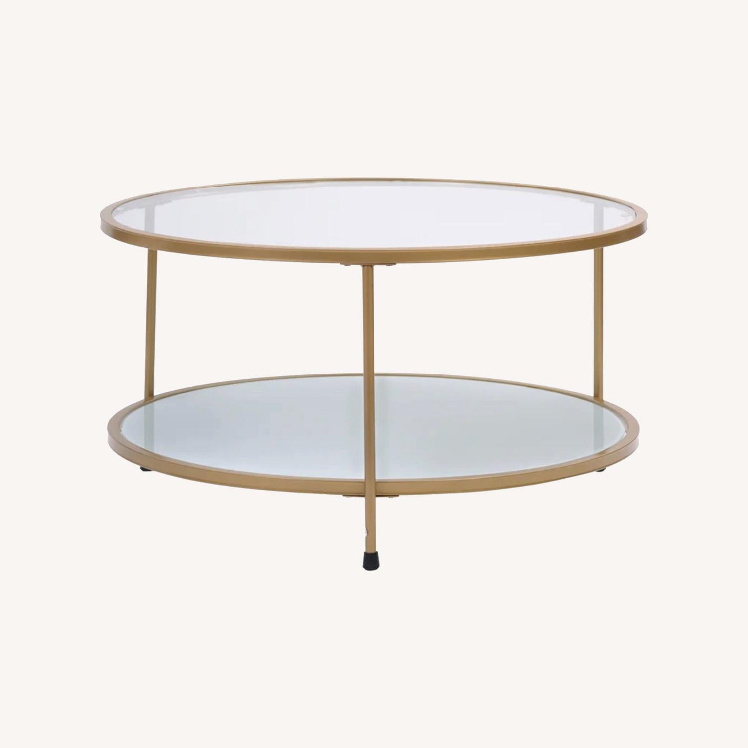 Seller's Notes:Features - Four tabletop suction cups support the glass for stable use. - Three non-slip rubber feet on the bottom to protect the floor. - Smooth clear glass surface for easy cleaning. - Includes necessary hardware. Widely used in bedrooms, living rooms, apartments, etc. This round coffee table is one of the signature pieces of furniture in your room. It is made of a high gloss metal frame which is sturdy and durable. The round top and lower shelves are made of 5mm tempered glass, giving you plenty of storage space. Sleek and minimalist exterior design creates an open and elegant feel.