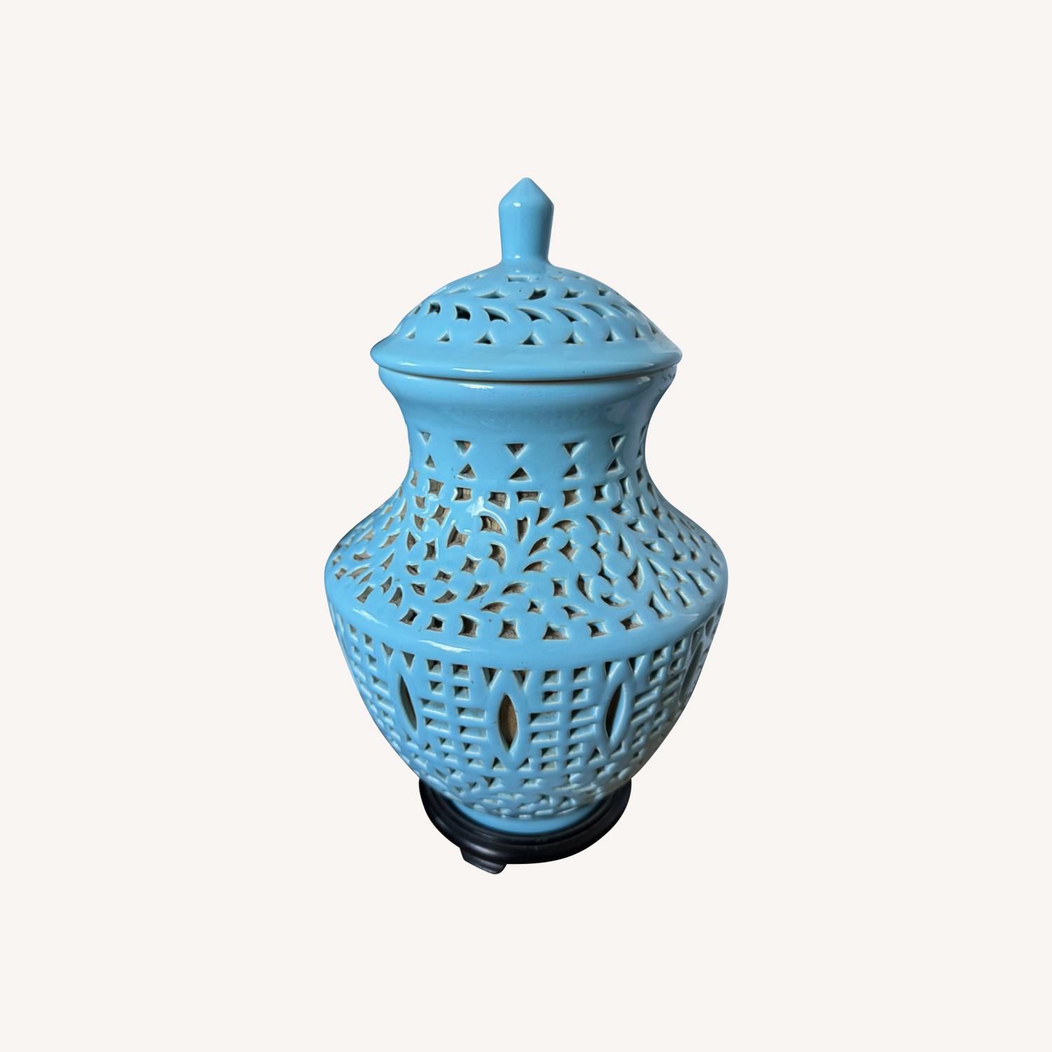 Pierced Antique Asian Blue Ceramic Table Lamp