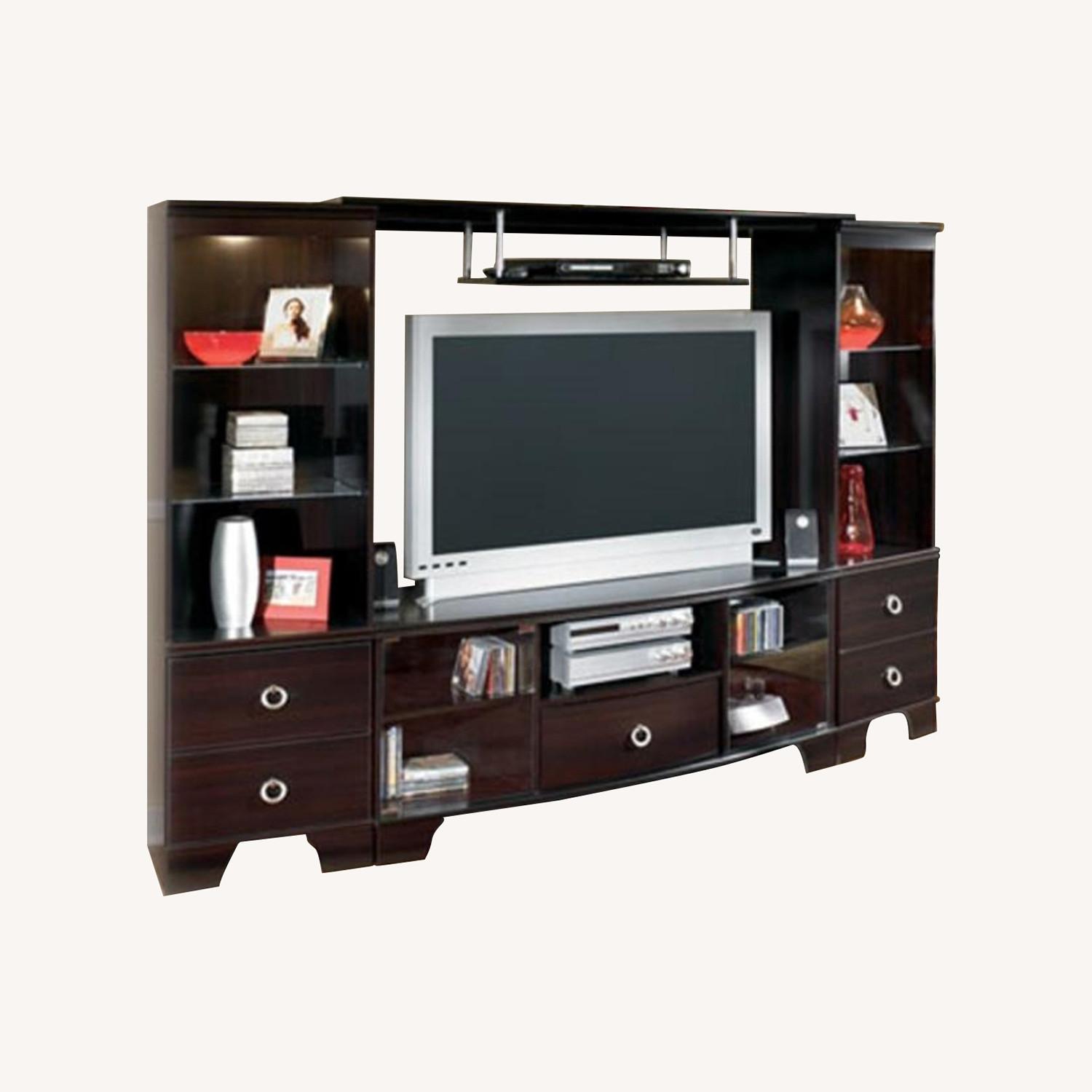 Seller's Notes:The Pinella - Merlot W403-24 Pier Cabinet By Ashley Furniture: Can accommodate a 60-inch wide TV, with curved drawer
