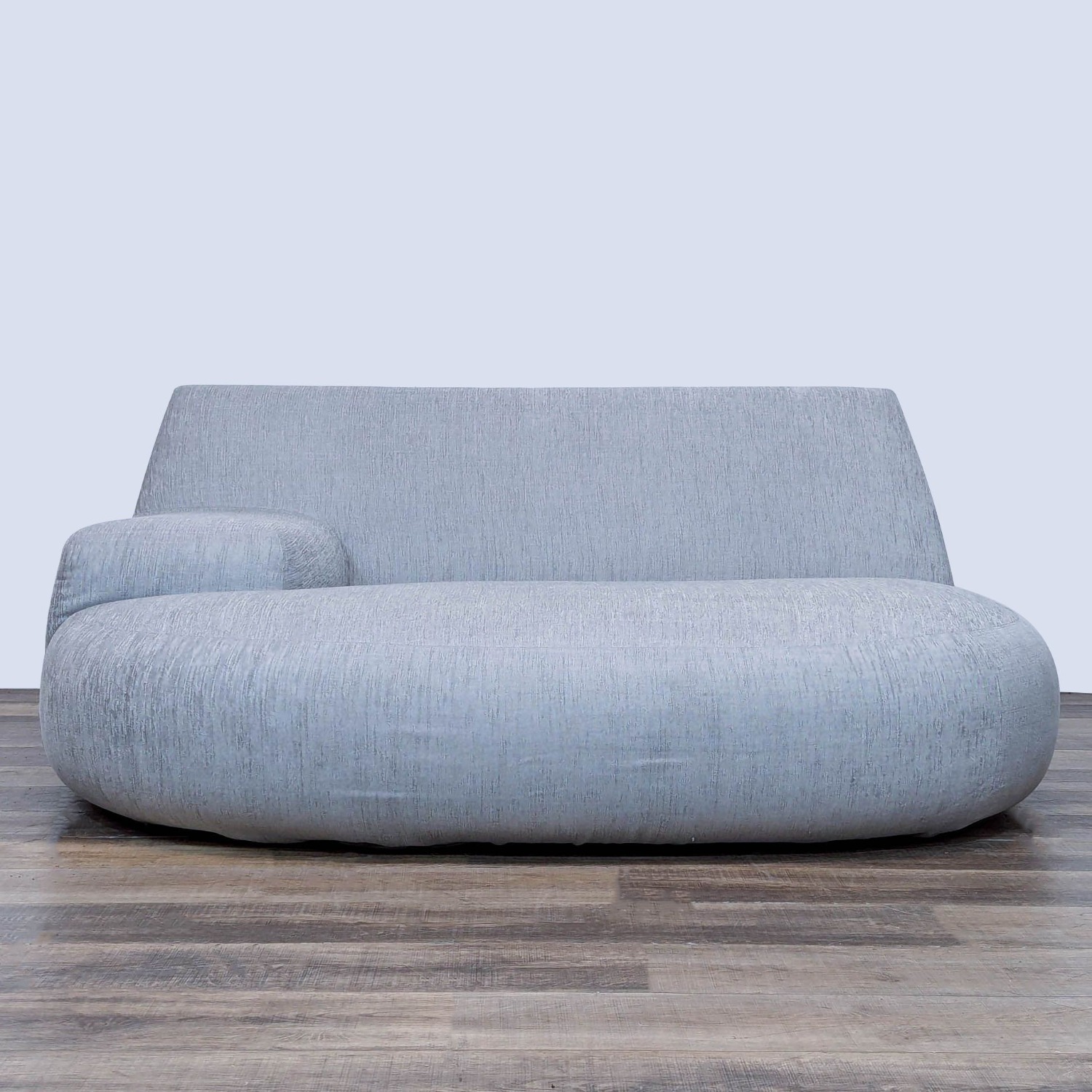 Seller's Notes:The Big Bug sofa features a deep curved seat with 360 degree swivel base, single armrest and light grey upholstery.