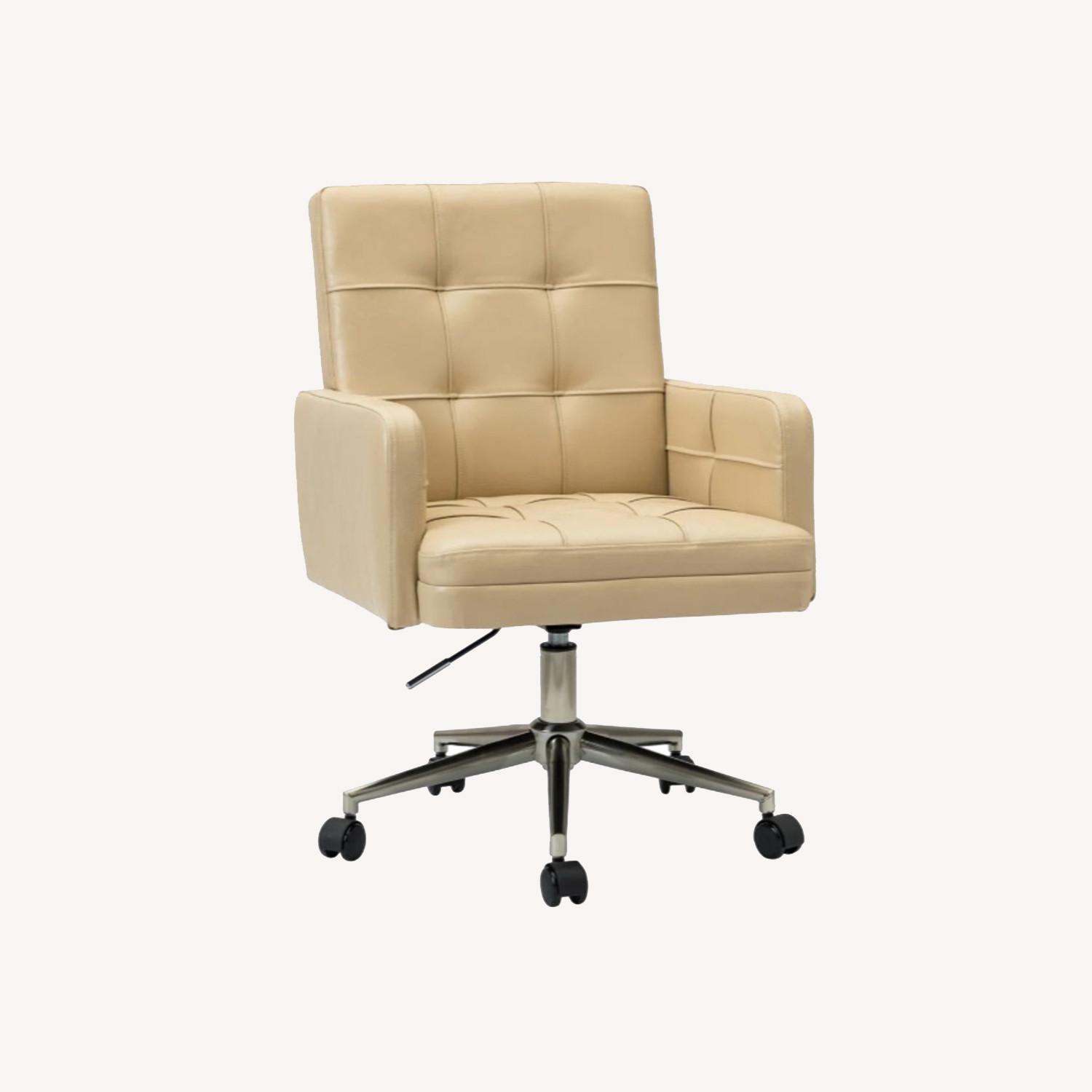 Seller's Notes:Whether you're working from the?appartment?or simply scrawling out shopping lists, this?button-tufted task chair?brings refined?mid-century?elegance to?your?home office. Designed in an?industrial style, this?modern?vanity chair?is a wonderful addition with its variety of vibrant colors. below, a classic?five-point base supports the entire?executive chair, while a lever-operated lift?adjusts the seat height?according to your actual needs. Equipped with 5 flexible wheels, this?sliding?workstation chair?rolls you from your desk to the filing cabinet with ease. The?transitional style?ergonomic desk chair?is ideal for?small spaces?including casual or professional areas, providing comfortable support with a cozy and convenient design.