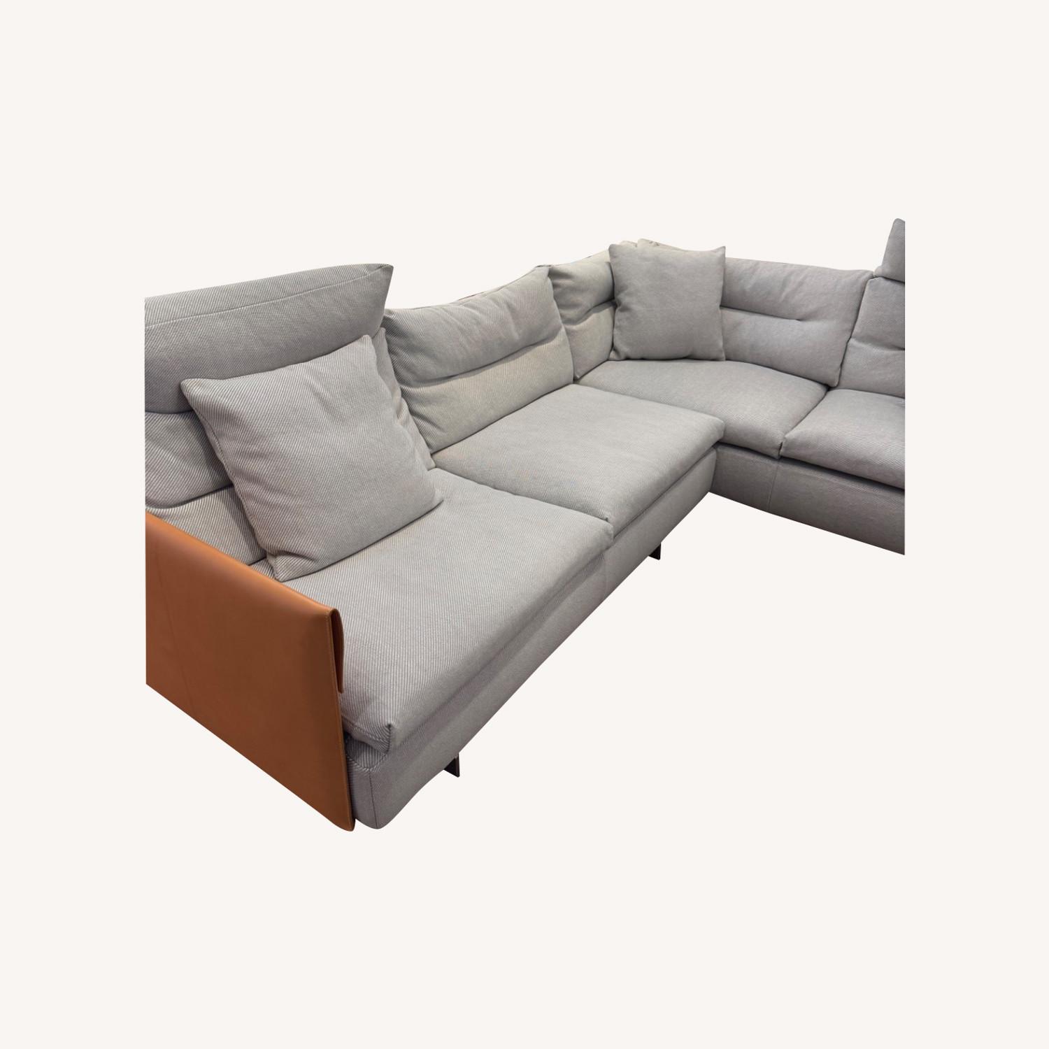 Seller's Notes:High end designer sofa with pillows and headrests included. Extremely comfortable but almost never used. Perfect condition. Beautiful 3 leg glass table available that coordinates beautifully with sofa and chair.