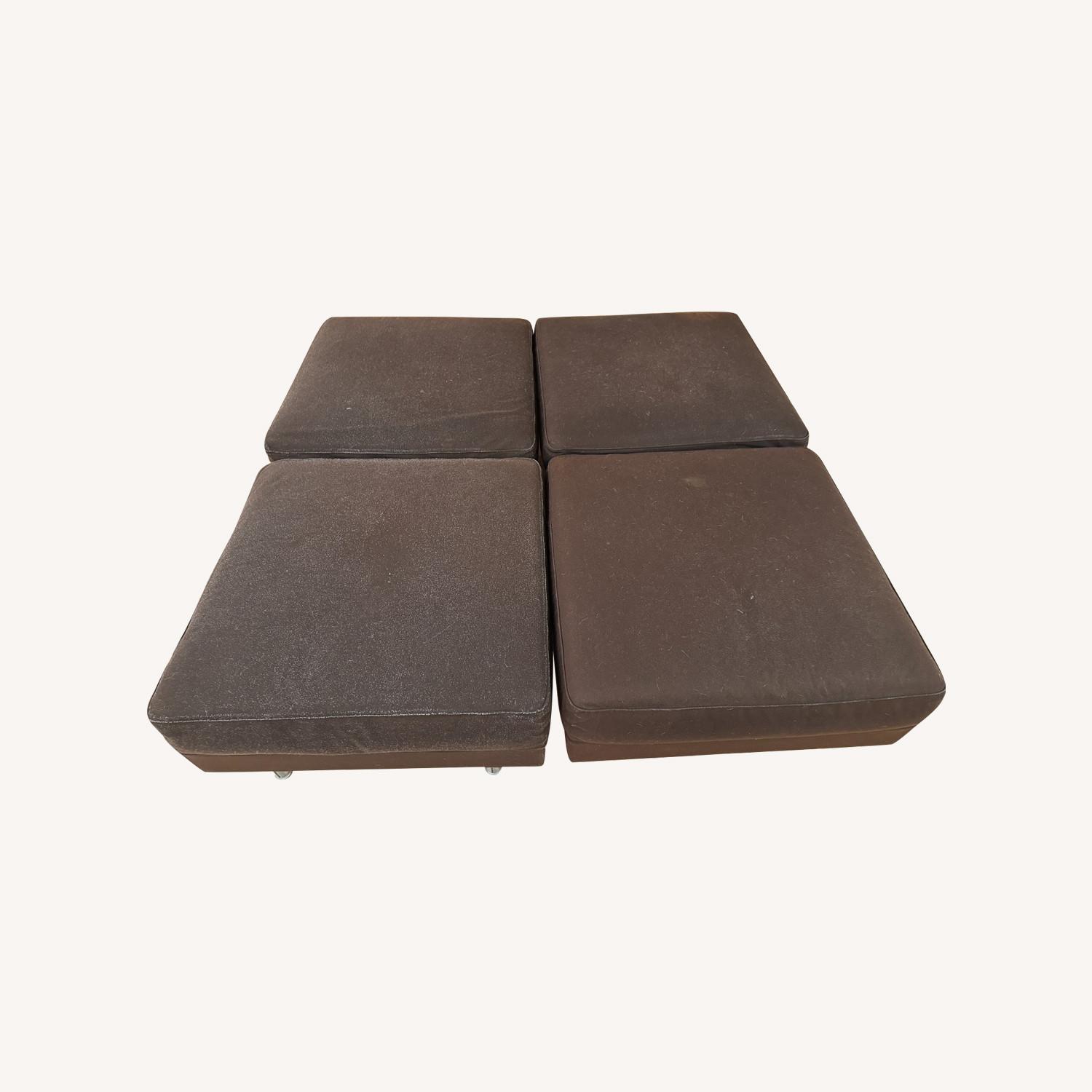 Wear and tear details: discoloration, holes lining on BOTTOM of ottomans
