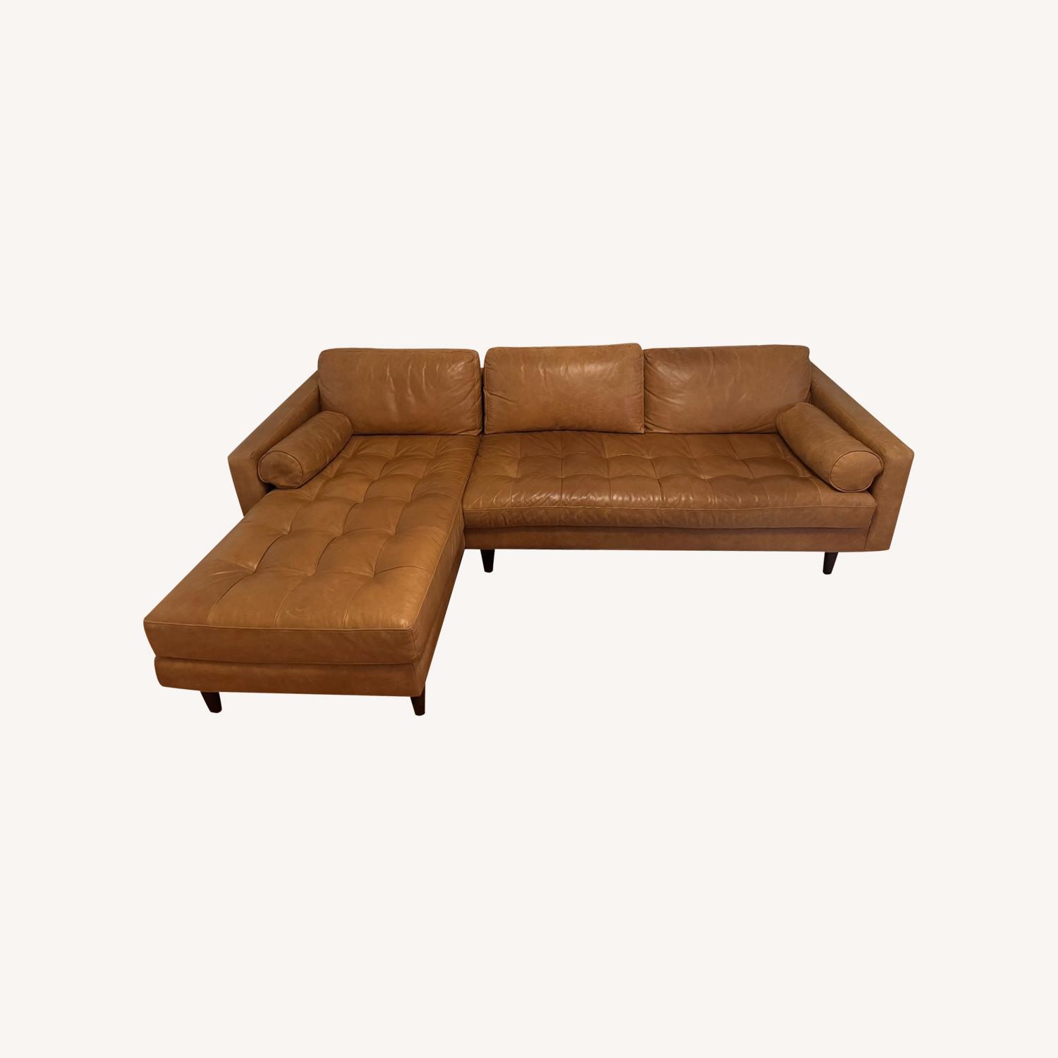 Seller's Notes:Relax and rejuvenate in the stylish comfort of this full-grain pure-aniline (cognac tan, cocoa brown) or semi-aniline (all other colors) leather Napa sectional sofa, which boasts a full chaise for optimal relaxation. The gorgeous Cognac tan pure-aniline dyed Italian tanned leather upholstery creates a unique presentation for each piece, showing off the natural characteristics and varying depth of color in each hide. With minimal processing, aniline hides proudly display the natural hallmarks of genuine leather such as fat wrinkles, growth marks, healed scars, insect bites and scratches. Similar to marble or a beautiful piece of timber, each leather will vary in color tone and pattern and will change, mark and stain, softening into its rich patina with age. Delivering exceptional craftsmanship, the sectional features a kiln-dried solid wood frame with reinforced joinery and corner blocking for added strength and durability. Designed both for style and beauty, the chair features Pirelli webbing to support its seat and back, with high density foam over polyester filling to provide just the right amount of support. Duck feather down adds appealing softness and a pair of loose bolsters are included, providing classic style and added support as desired.