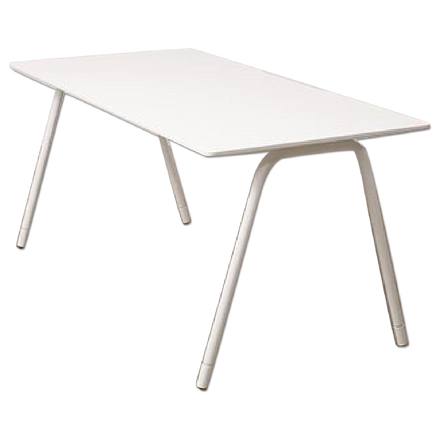 Seller's Notes:Lost my job and have to sell. Paid $500 in June. Fantastic desk! Basically new. You will love this desk and get compliments galore! Slick White surface slides forward to reveal secret cable and power management. Powder-coated White tubular steel frame. Adjustable feet keep things level. Measures 30" x 60" x 29-30" (height adjustable). Super easy to move: No tools required, just twist in the 4 legs and call it done