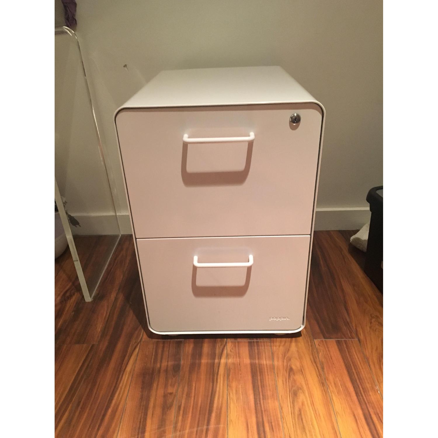 Seller's Notes:File with style! Selling our like-new white two drawer Poppin filing cabinet as we are moving to a new space and this filing cabinet is too big! Comes with keys to lock up your files. No scratches, no dents, excellent condition!!!! From poppin: File in style! Stow 2-Drawer File Cabinet is the stylish shelter your files are seeking. Powder-coated steel construction with matching painted steel interior keeps documents and doodads super safe. One lock secures both drawers, giving the entire cabinet the privacy it deserves.