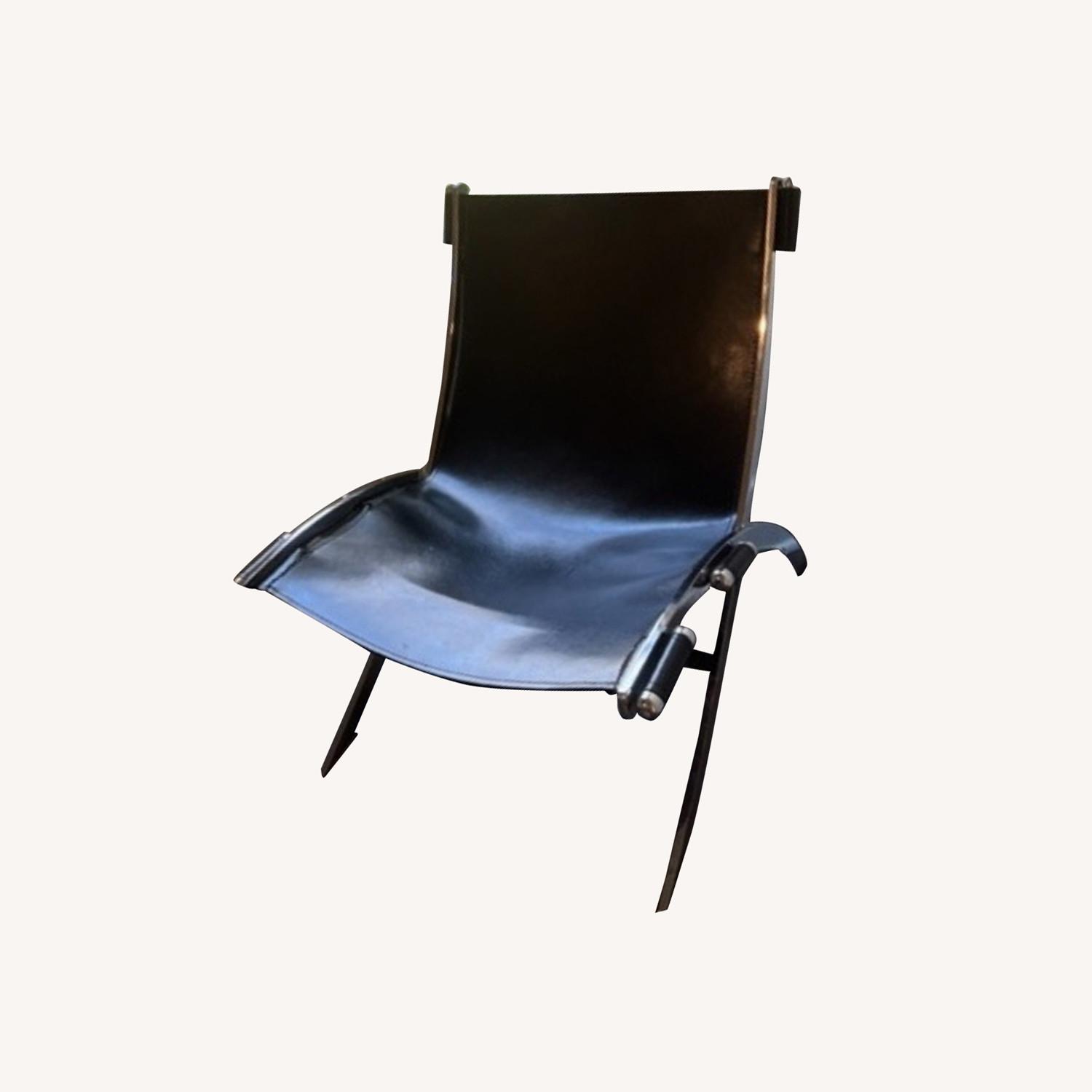 Seller's Notes:Vintage postmodern leather and chrome scissor style chair. In the style of the Timeless chair by Antonio Citterio for Flexform. Mid-Century classic modern style. Not an original piece but extremely rare design. Purchased second hand in good vintage condition, sadly do not have space in my new home. Wear consistent with use and age. Cracks and tears in leather pictured. Still has many good years left. Very heavy and stable.