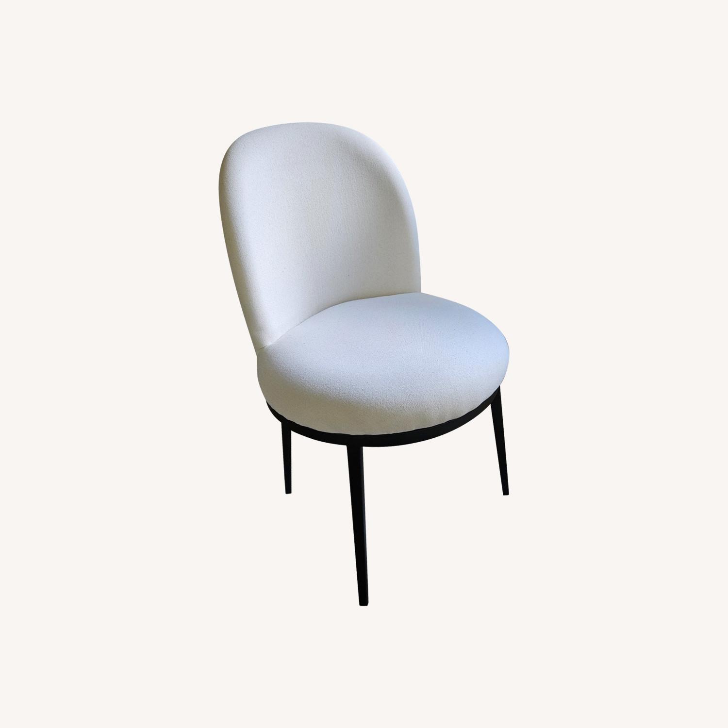 Seller's Notes:From website: "Inspired by classic mid-century modern designs, our Emily Chair lends a clean-lined look to your dining space. Crafted with a metal frame and elegant, tapered legs, it features a cushioned, rounded seat and curved back that add softness and cradling comfort to the structured silhouette." Used occasionally as a desk chair. Had sliders so that bottoms would not wear. 6 months of occasional use. Needs a better home! Slight stain on back left of bottom seat as pictured; shows up more in pictures than IRL. Probably can come right up. No pets or people sat on this besides 1 person. Purchased directly from Pottery Barn.