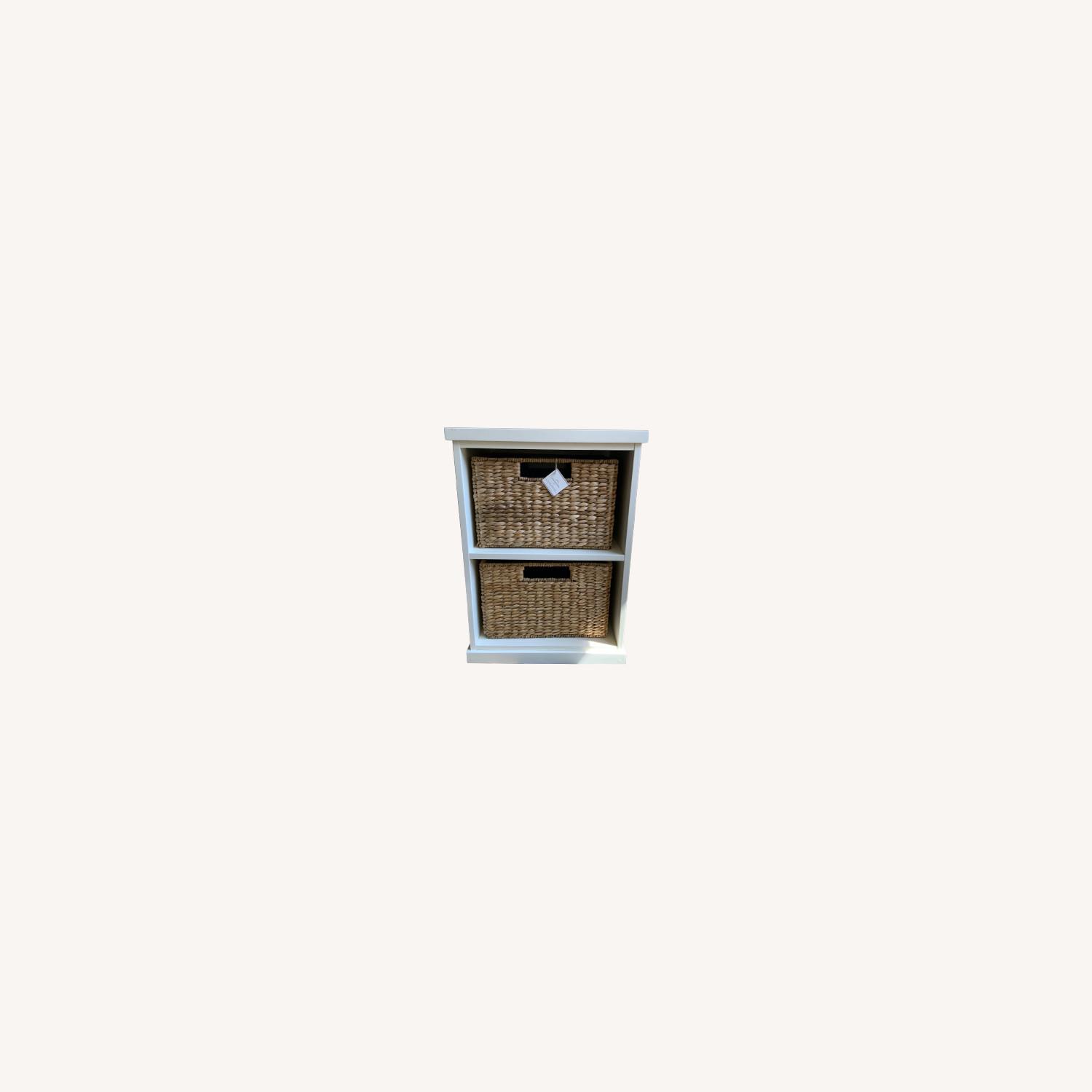 Seller's Notes:Pottery Barn 2-shelf bookcase in Cream in pristine condition. Includes two Savannah baskets which fit perfectly in the shelves, but the bookshelf can be used without the baskets. I am selling because I am moving out of state, but would keep otherwise since the quality is top notch.