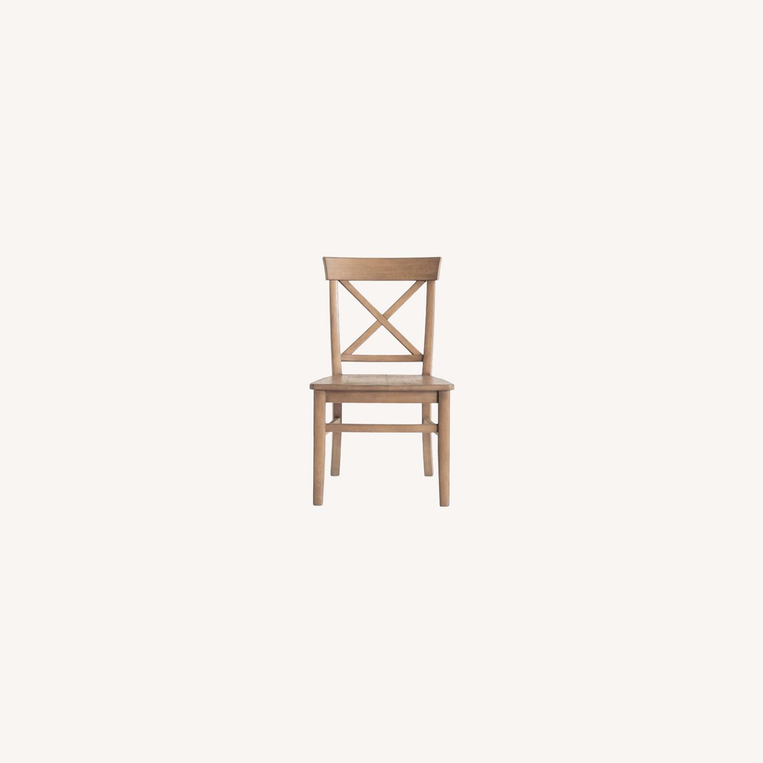 Seller's Notes:Skilled artisans craft our iconic Aaron dining chairs from solid hardwood, carefully joining the X-shaped back by hand for precise symmetry. The contoured seats and curved backs offer subtle flared details. Made of kiln-dried solid rubberwood. Solidly constructed using mortise-and-tenon joinery and corner blocks for exceptional stability. Finished by hand using an exclusive layering technique that results in beautiful depth of color, then sealed with a protective lacquer. Finish features light distressing around the edges. Chair is sized for use with our medium/large or large PB Classic Dining Cushion (sold separately). Sold individually.
