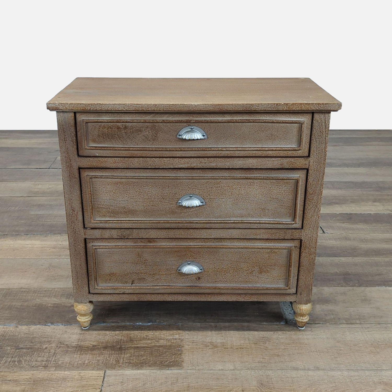 Seller's Notes:Features lathe turned legs, molded trim on drawer face and 3 spacious drawers for storage.