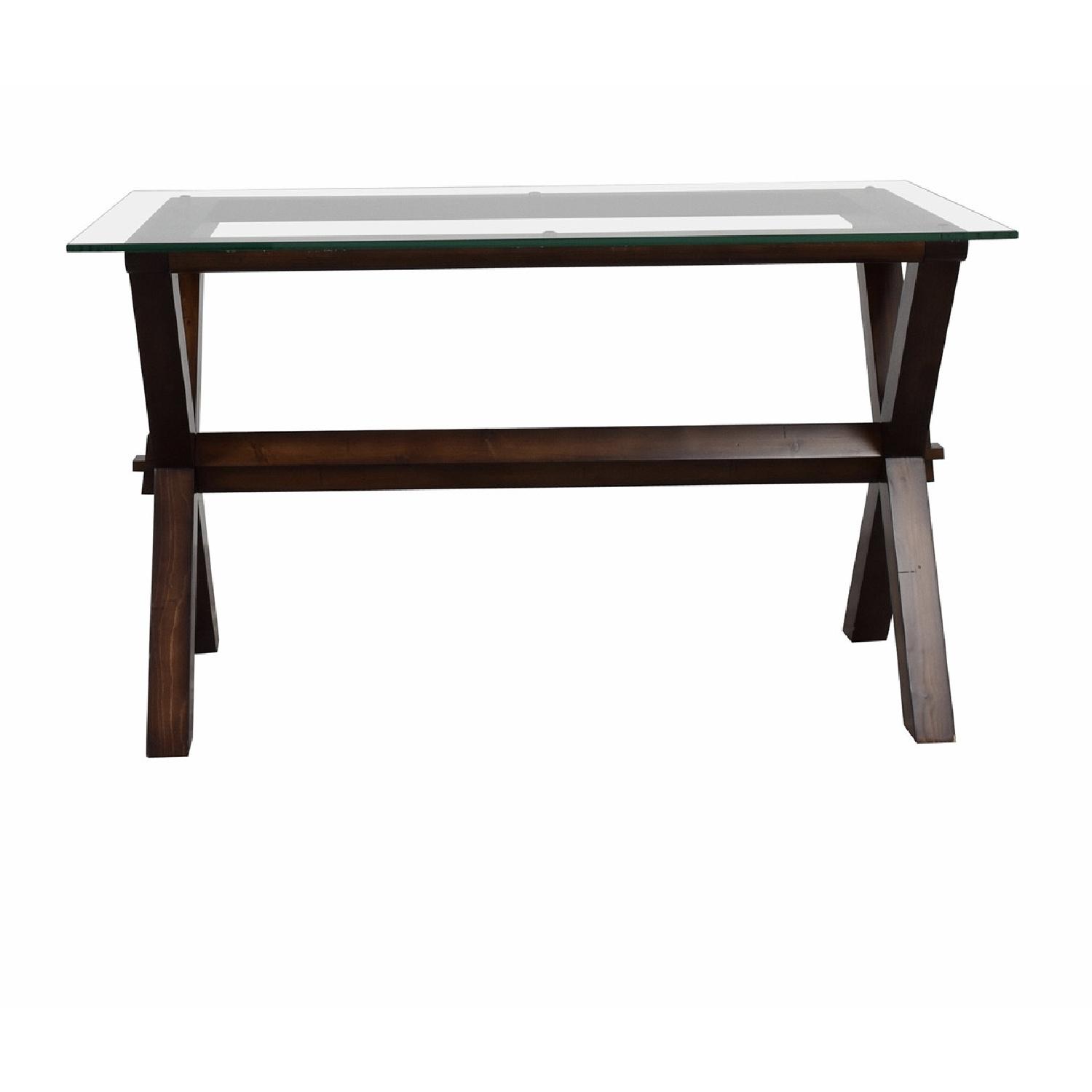 Seller's Notes:Pottery Barn Ava Desk In great condition. This desk has a wood base (in espresso finish) and a class top. The top provides a lot of surface area and is perfect for use as a desk or table.