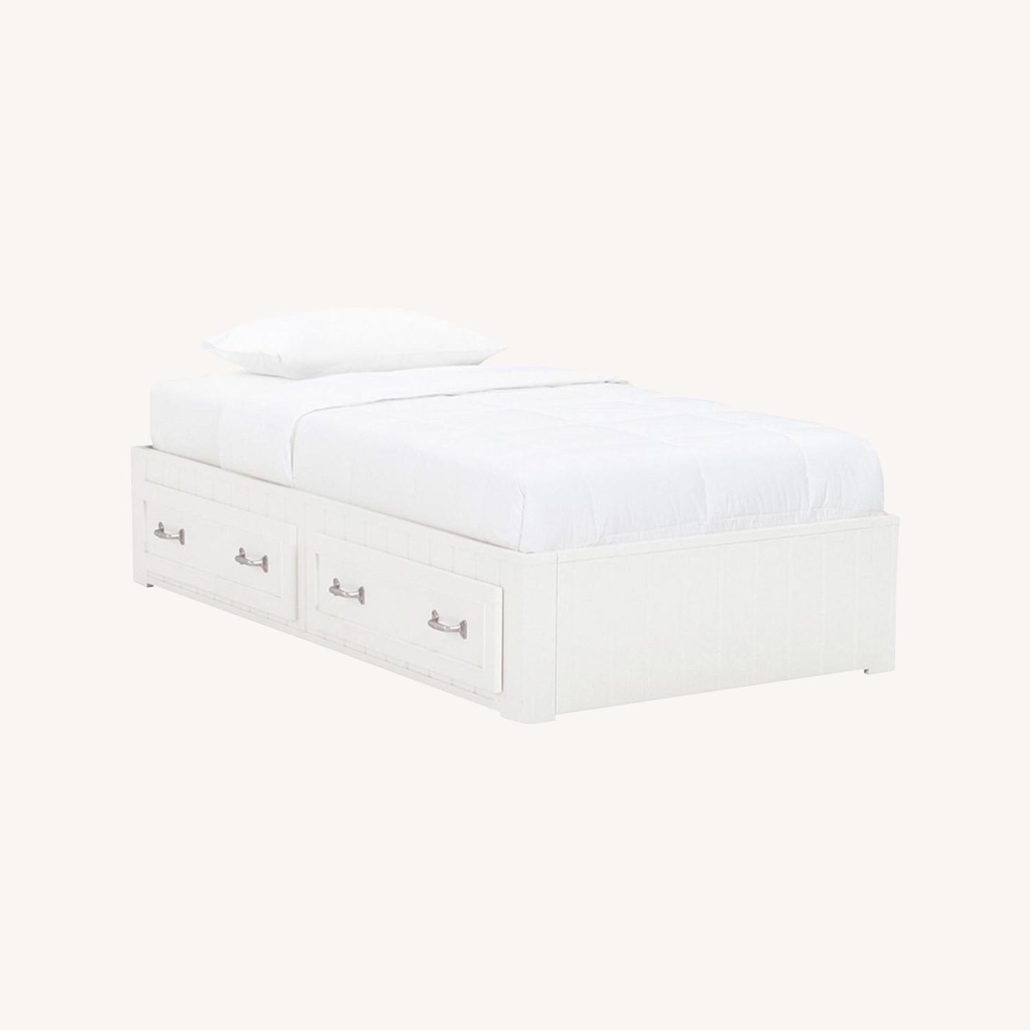 The Belden Collection is the perfect solution for shared or small spaces. The platform and bunk beds are made out of solid wood frames and feature extra storage. To finish off the collection, we use appliqué molding on drawer fronts and stylish drawer pulls. Plus, it’s GREENGUARD Gold Certified, which means it’s built to contribute to cleaner air for a healthy home. HOW IT IS CONSTRUCTED Crafted with a kiln-dried solid poplar, pine wood and MDF. Masterfully crafted with mortise-and-tenon construction, and tongue-and-groove joinery for structural integrity. Drawers feature English dovetail joinery, and waxed wooden glides, which ensure smooth motion. Sturdy half-moon safety stops keep drawers securely in place. Hardwood frame is kiln-dried to prevent warping or bowing. GREENGUARD Gold Certified to contribute to healthier indoor air, keeping you and your family safer. DETAILS THAT MATTER Designed with classic beadboard paneling and built-in storage. Each bed is equipped with two storage drawers along one side, with appliqué molding on each drawer front. Storage drawers can be installed on either side of bed. Mattress platform is made of 100% solid wood slats for extra strength; designed for use with or without a box spring (mattress and box spring are sold separately). Simply White, Charcoal and Weathered Navy all feature brushed nickel drawer pulls. Seadrift features oil-rubbed Bronze drawer pulls. Bed is not compatible with a trundle. KEY PRODUCT POINTS Minimum mattress height: 9". Recommended maximum weight Twin bed: 300 lbs. All Pottery barn kids juvenile products are tested at 3rd party CPSC accredited labs to meet or exceed all industry voluntarily and regulatory safety requirements.