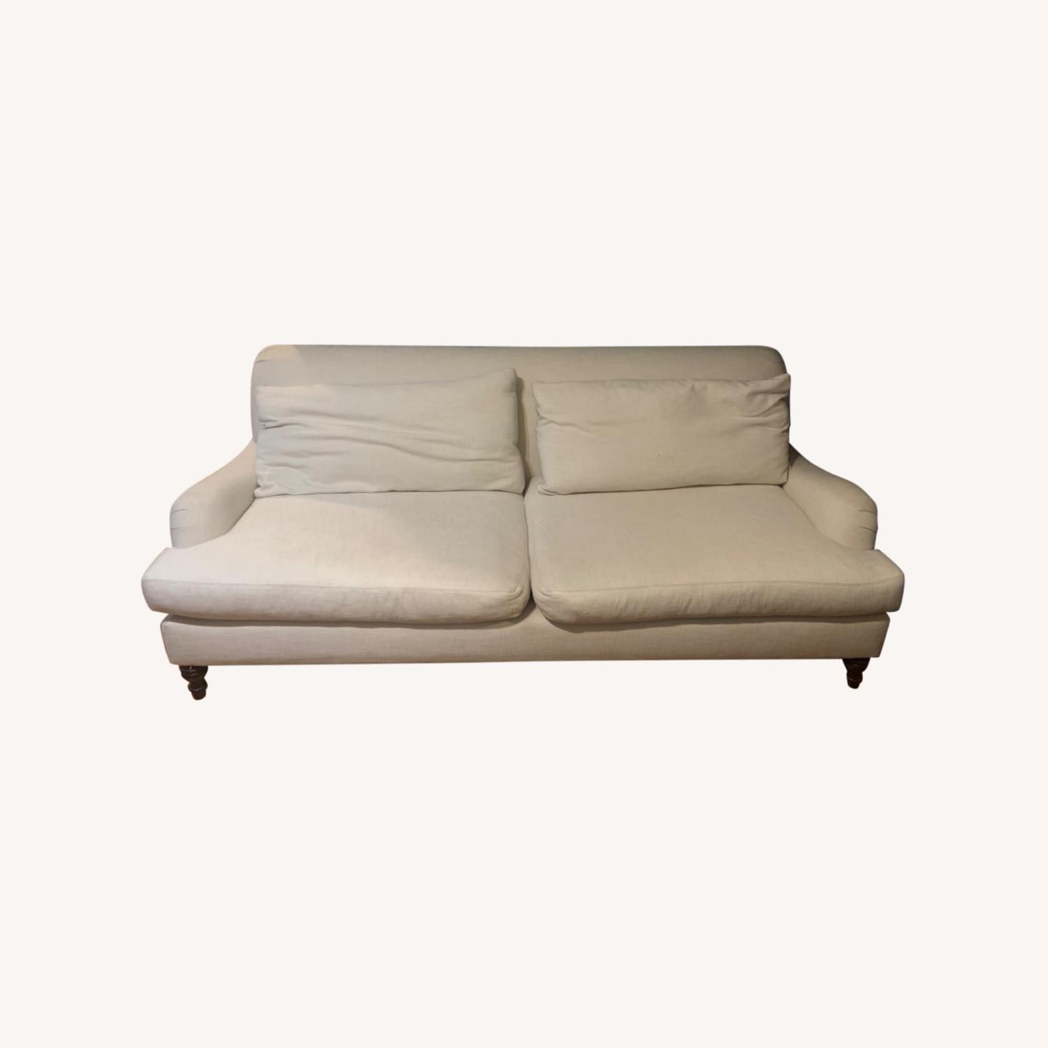 Seller's Notes:Carlisle upholstered sofa 91in, down blend, twill cream. Extremely comfortable and beautiful. Most of it can be removed and washed so stains and spills come off easily. Moving cannot take with me. Paid over $2k about 2 years ago.