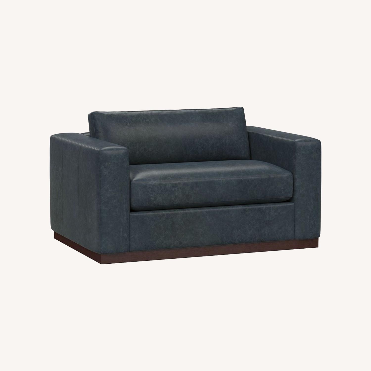 Pottery Barn Carmel Blue Leather Loveseat