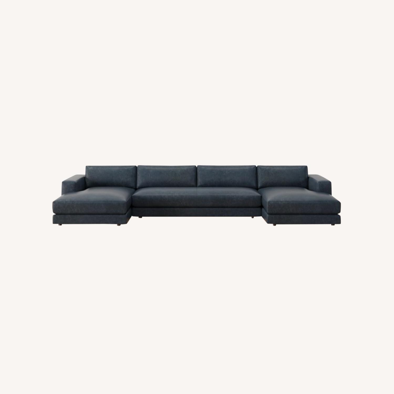 Seller's Notes:*BRAND NEW UNOPENED* Pottery Barn Carmel Lounge Square Arm Leather U-Double Chaise Loveseat Sectional with Bench Cushion, Down Blend Wrapped Cushions, Statesville Indigo (color) I ordered this sectional months ago but I moved after ordering, Pottery Barn does not accept returns for the sectional! It is brand new and unopened. Please note: the color is Statesville Indigo, which is a dark blue. The brown color pictures are for reference only, it is not brown!