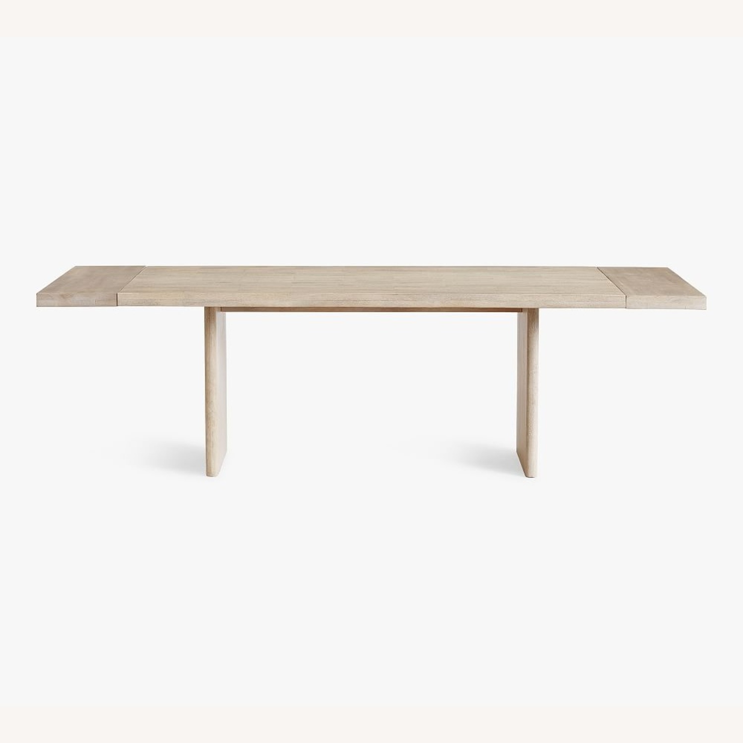 Seller's Notes:Selling a brand new, barely used Pottery Barn Cayman Extending Dining Table with matching bench. Purchased new, assembled, and barely used at all: no scratches, no marks, no wear. The table is in perfect, showroom new condition, as shown in photos.