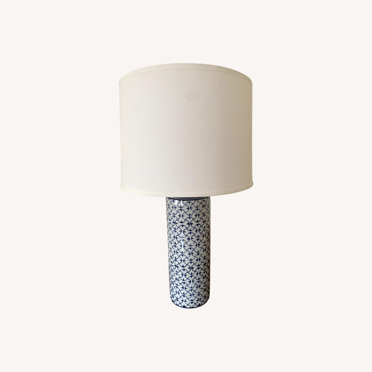 Seller's Notes:This lamp is like new and was purchased in late 2021. The ceramic base of the Ingle Table Lamp is painted by hand in a blue-and-white pattern for an artisanal appeal. Topped with a linen shade and with a simple silhouette, this lamp creates a chic global accent on a console or dresser. It adds subtle detail to a room that can blend with multiple decor styles, whether it's English countryside with dainty accents, a breezy Santa Barbara-style or a quiet pop of color with a modern feel.