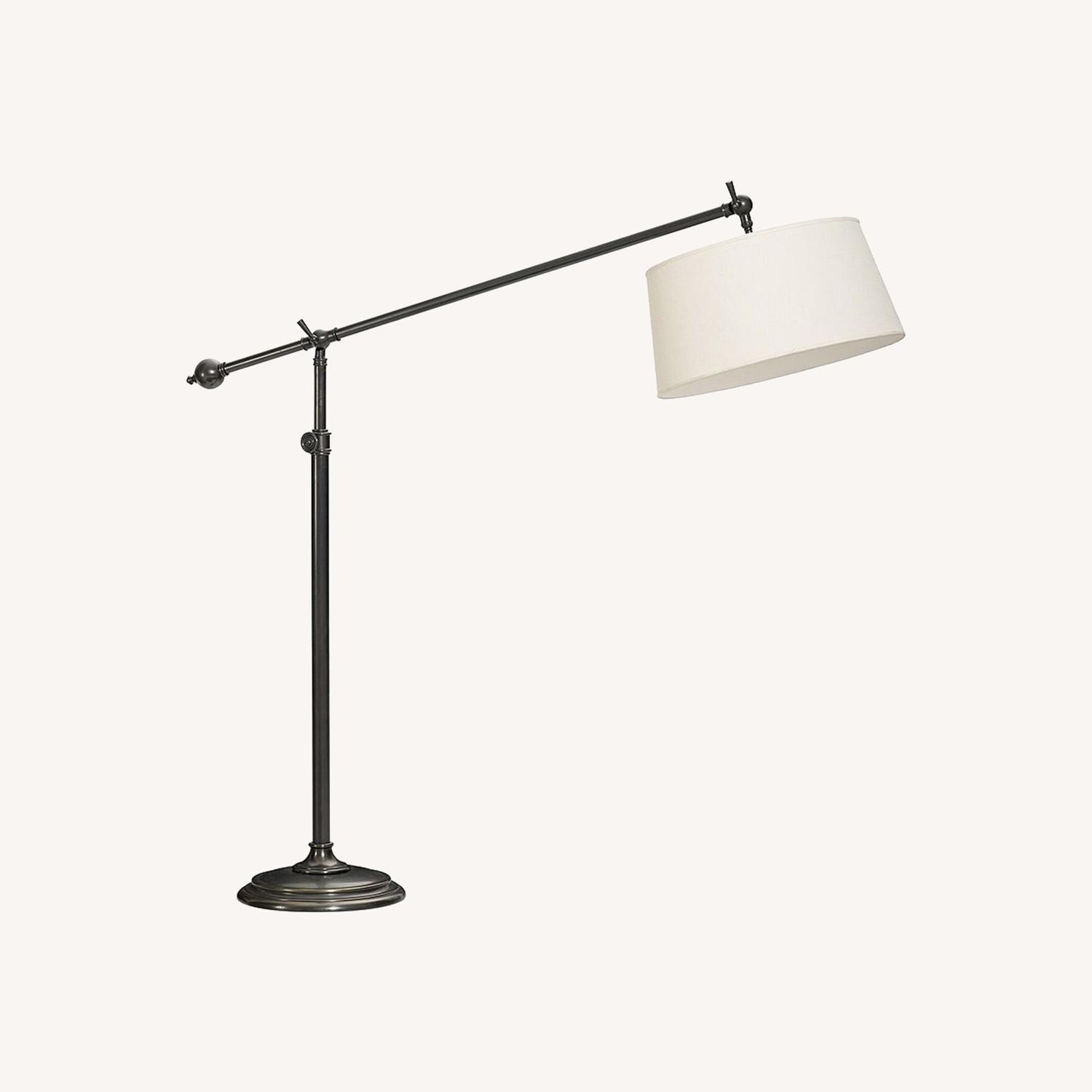 Slender boom arm floats light over a couch or sectional without impeding movement.