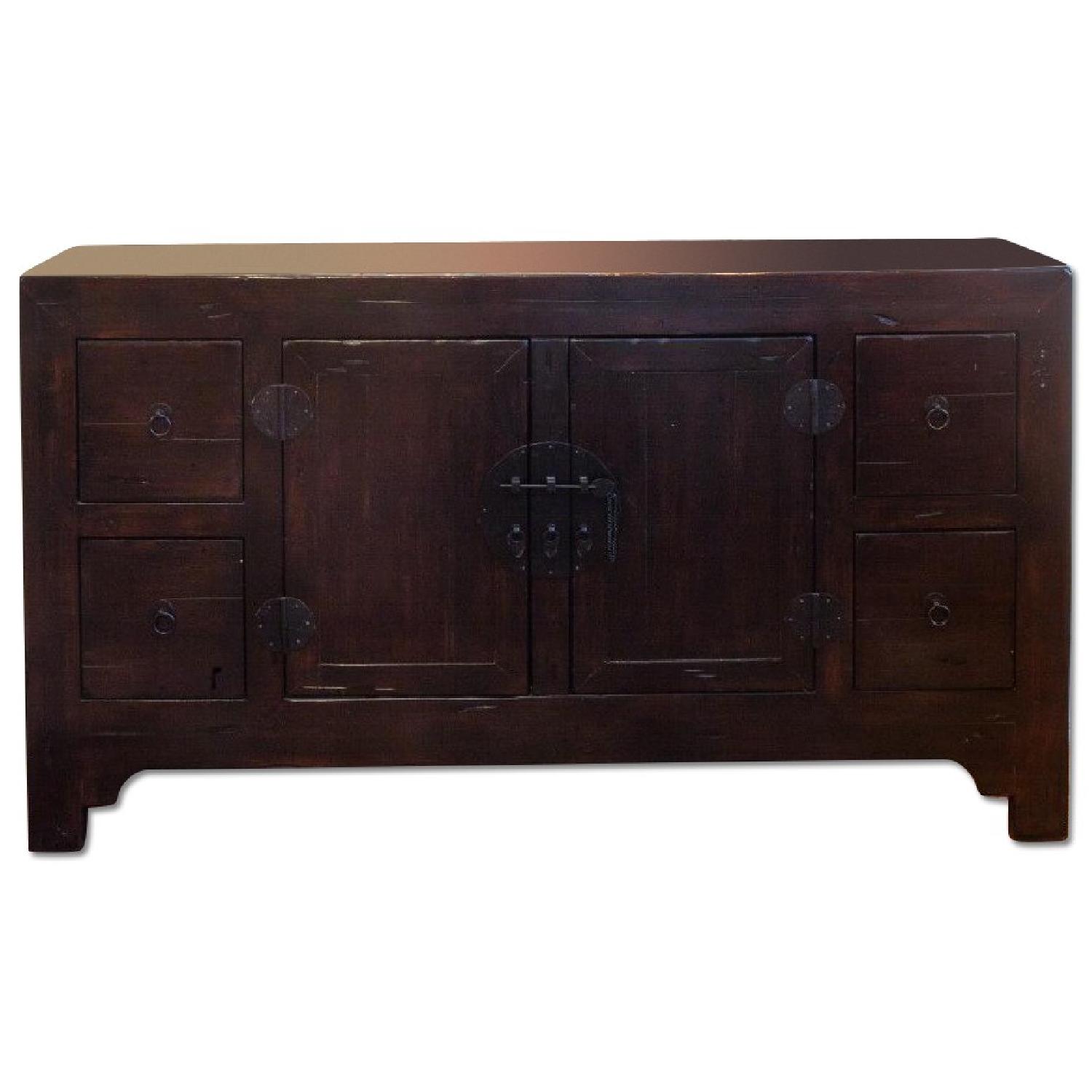 Seller's Notes:Perfect for the eclectic-modern home! It is a versatile piece with classic chinese-style hardware. It can be used in a living or dining area. It could also serve as a media unit, although it does not currently have holes on the interior for cables. I'm selling because this piece doesn't fit the style/decor direction of my new apartment. There are some scratches on top that can easily be covered with a tray.