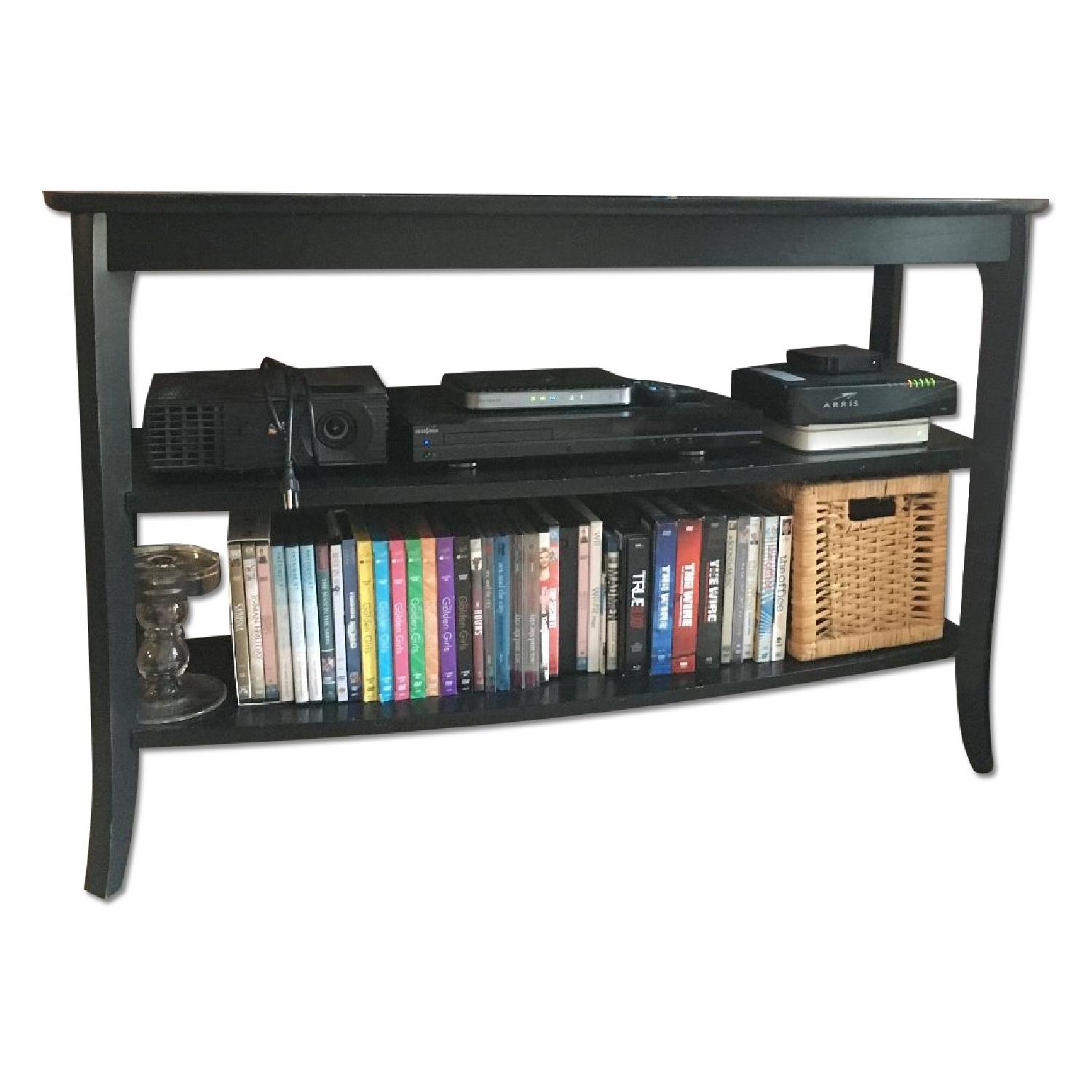 Seller's Notes:Pottery Barn Chloe Console Table. Selling because relocating cross country. From Pottery Barn: With rounded corners and gently flared legs, this beautifully crafted hardwood console has a graceful silhouette that's matched with incredible durability. Overall: 47.5'' w x 17'' d x 30'' h Upper Shelf Interior: 43.5" w x 13" d Clearance Above Upper Shelf: 9.5" Bottom Shelf Interior: 43.5" w x 13" d Clearance Above Bottom Shelf: 10" Clearance From Floor: 6.5" Distance Between Legs: 42.5'' at sides; 10.5" at head Weight: 43 lb
