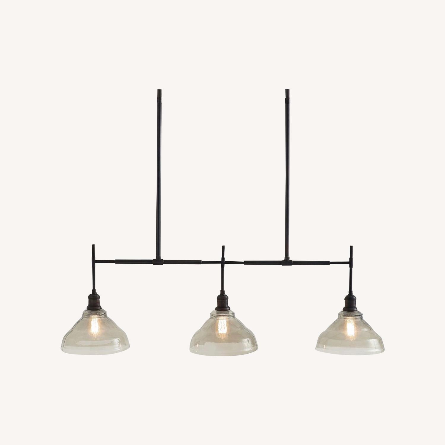 Seller's Notes:Collection: PB Classic Linear ChandelierFM Linear ChandelBronze Condition: Floor model: Has been used as a display model in a retail store Glass globes not included. Can be purchased separately