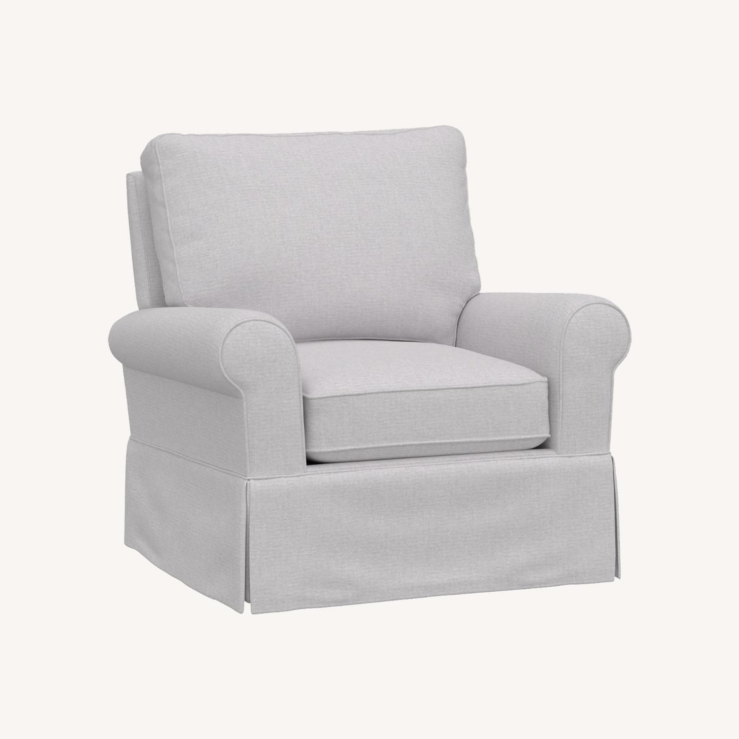 Seller's Notes:Our comfortable glider and matching ottoman are must-haves for feeding, playing and bonding with your baby. Thick cushioning and a sturdy hardwood frame combine welcoming comfort with strength and longevity. This piece is GREENGUARD Gold Certified and meets strict chemical emissions limits to contribute to healthier indoor air. HOW IT IS CONSTRUCTED Eco-friendly construction includes hardwood certified by the Sustainable Forestry Initiative, and springs made of recycled heavy-gauge steel. The soft seat cushion is made with up to 40% recycled materials. Hardwood frame is kiln dried and corner blocked for structural integrity. Springs are made using up to 70% recycled heavy-gauge steel. GREENGUARD Gold Certified to contribute to healthier indoor air, keeping you and your family safer. DETAILS THAT MATTER The cushions’ foam core centers are made from 20% soy-based foam. Chair glides which helps baby stay calm. Masterfully designed for exceptional comfort. KEY PRODUCT POINTS All Pottery Barn Kids juvenile products are tested at 3rd party CPSC accredited labs to meet or exceed all industry voluntarily and regulatory safety requirements.