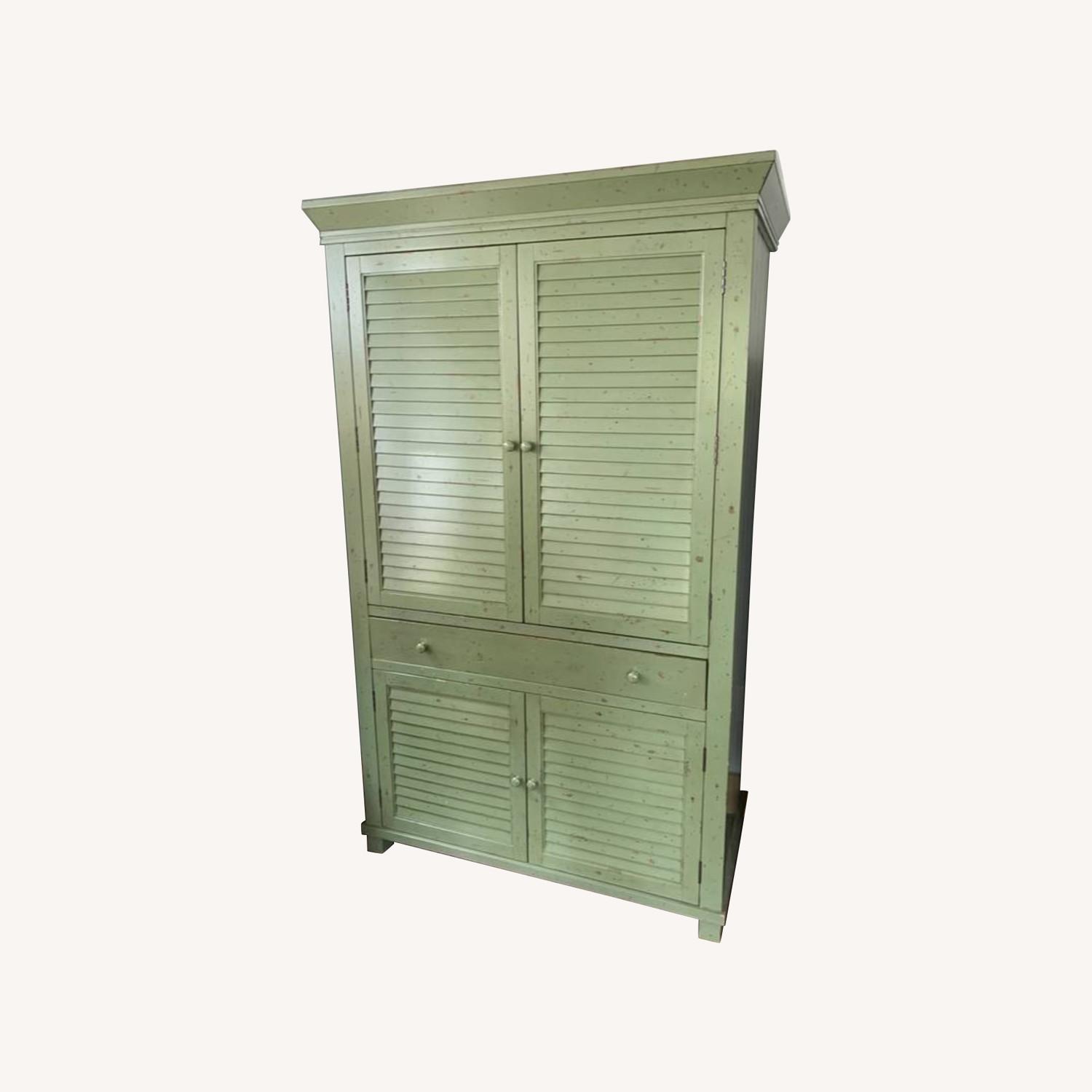 Seller's Notes:Beautiful and well made green computer hutch by Pottery Barn. 42" wide, 23" deep and 73" high.