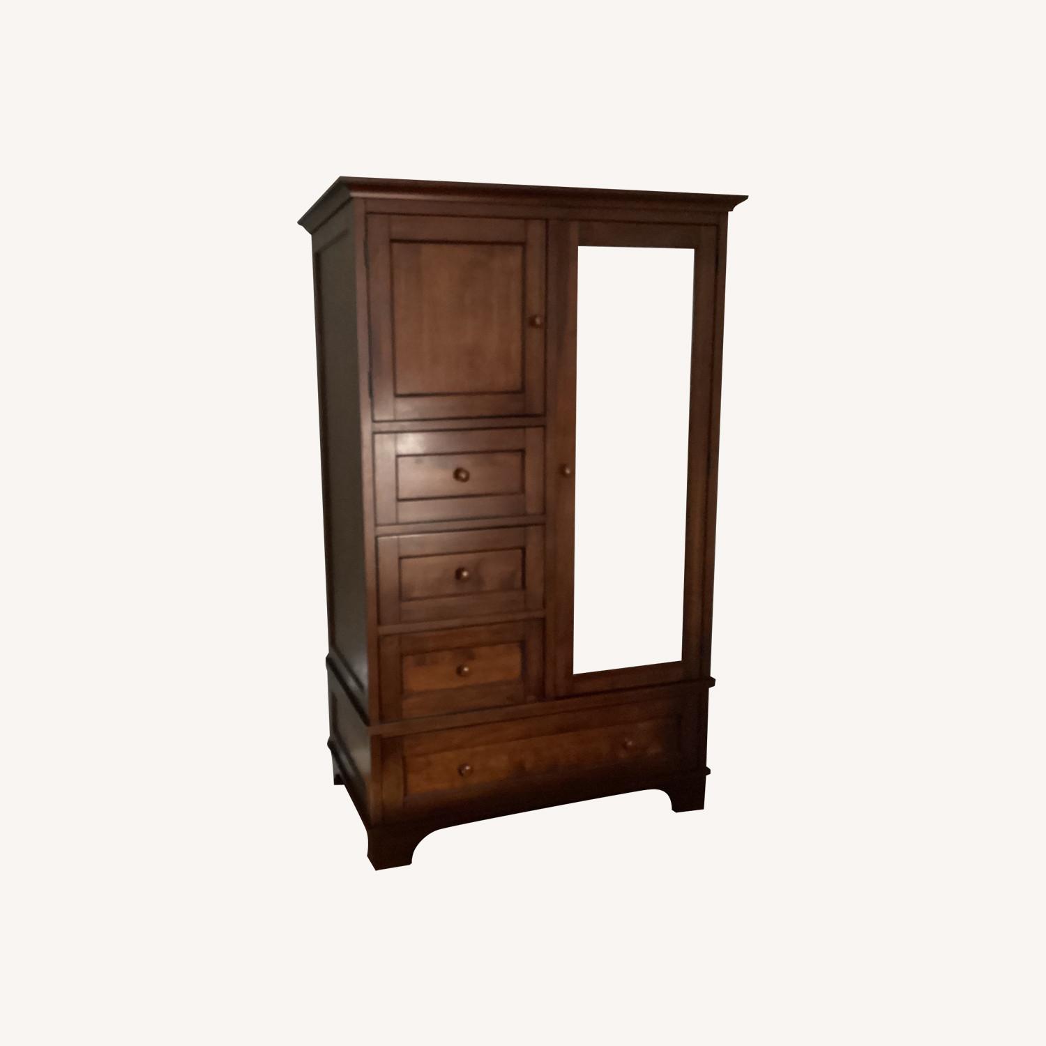 Seller's Notes:Our Cynthia Chiffonier’s versatile design is adapted from a classic European armoire. Behind the closet’s beveled mirror door are two adjustable shelves and a removable clothing rod.