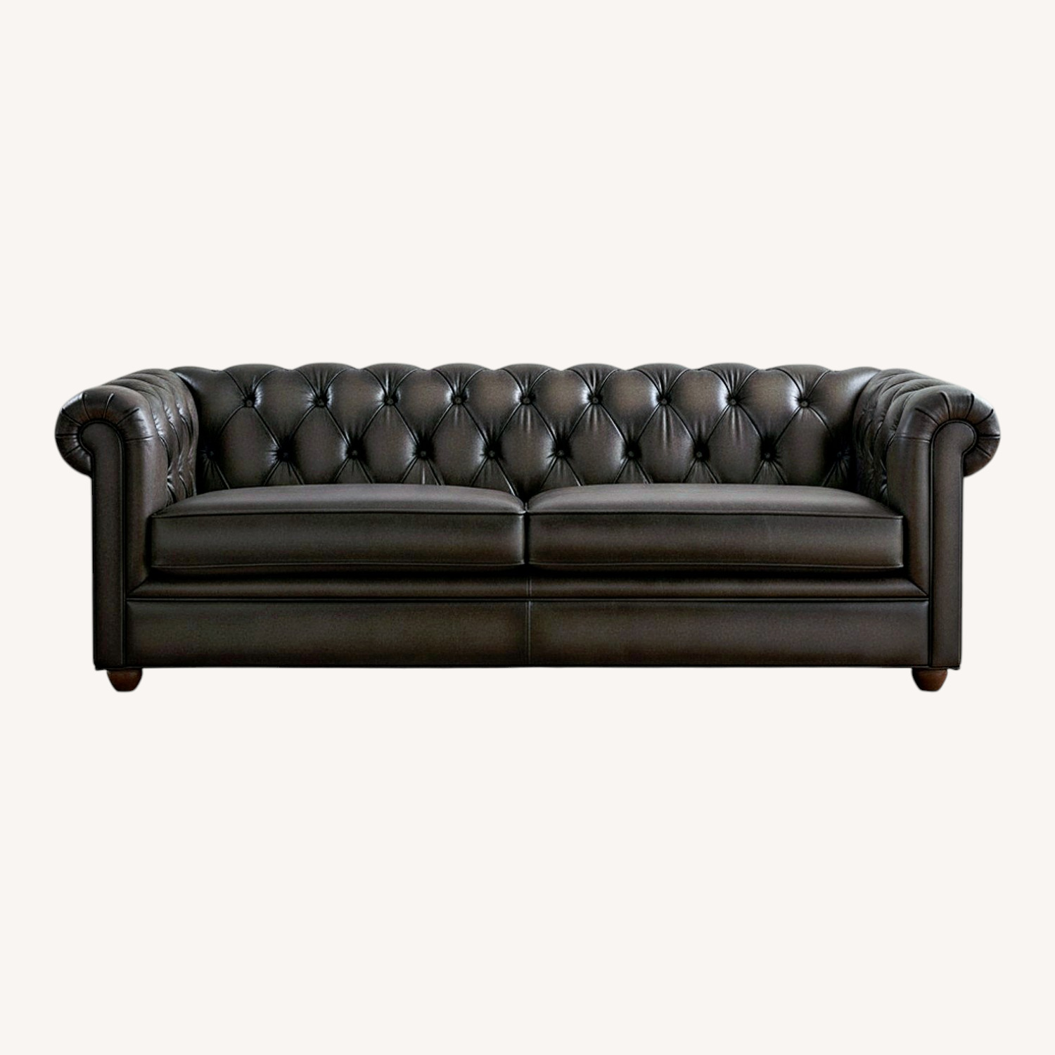 Seller's Notes:This is a great couch in great condition. Very minor scratch here and there that don’t stand out/ add to character of the leather. Purchased from Pottery Barn in Spring 2023. Rolled arm and tufted.