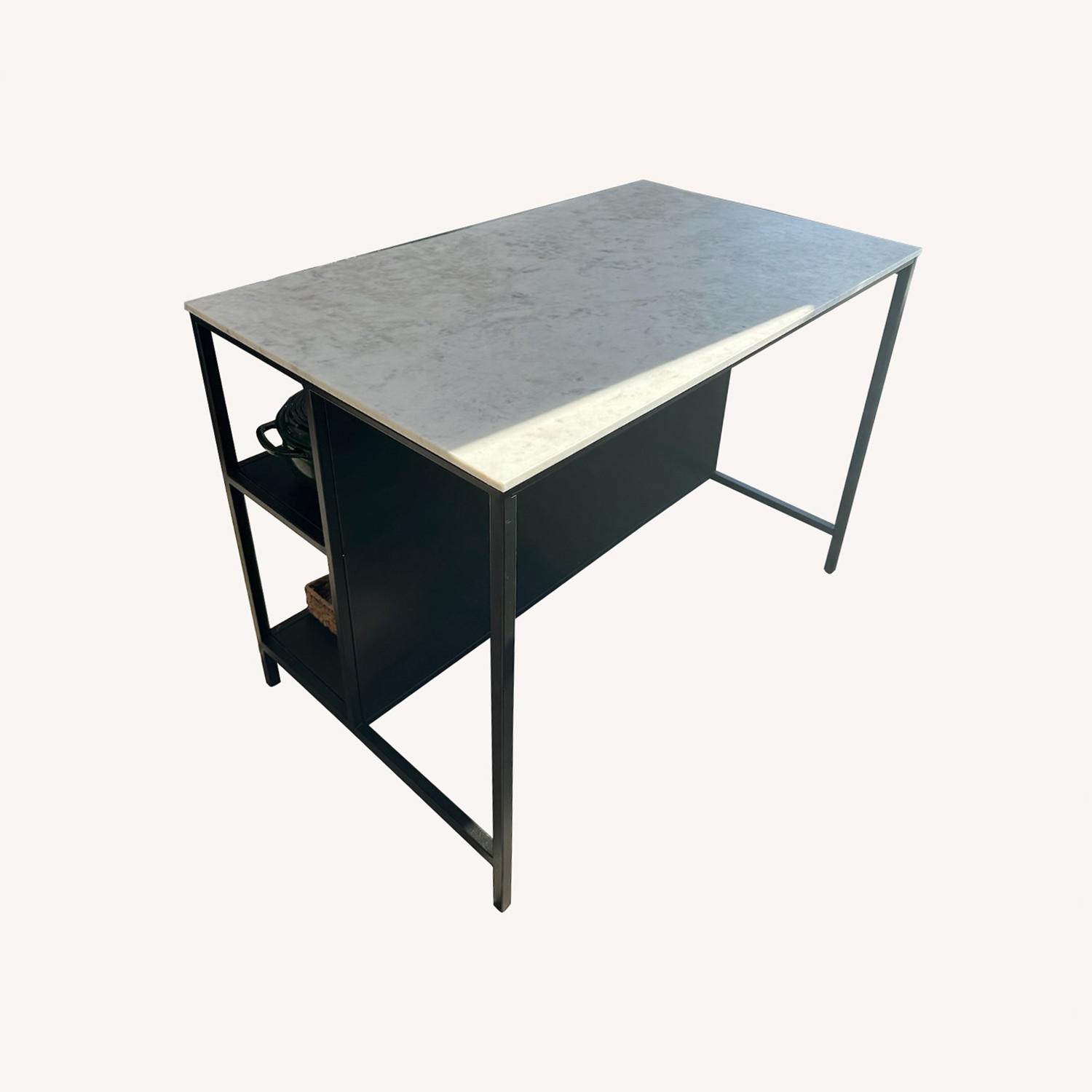 Seller's Notes:This is a sleek marble top kitchen island with shelving and storage areas. Great condition.