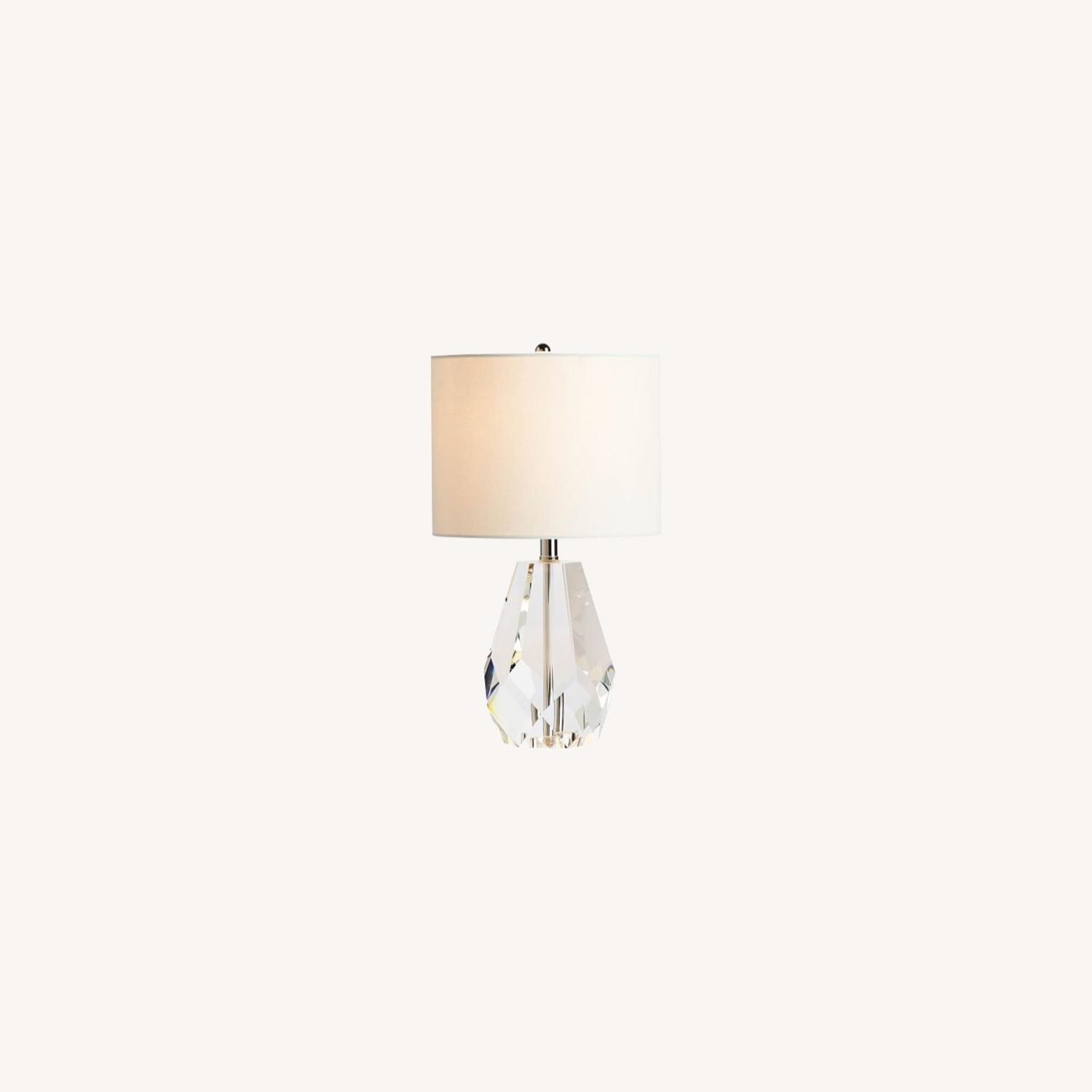 Seller's Notes:Overall (without shade): 6.5" diameter, 19" high Shade: 11" diameter, 8.5" high Base: 6.5" wide x 8.5" high Finial: 1" diameter, 1" high Harp: 7" Cord: 8’