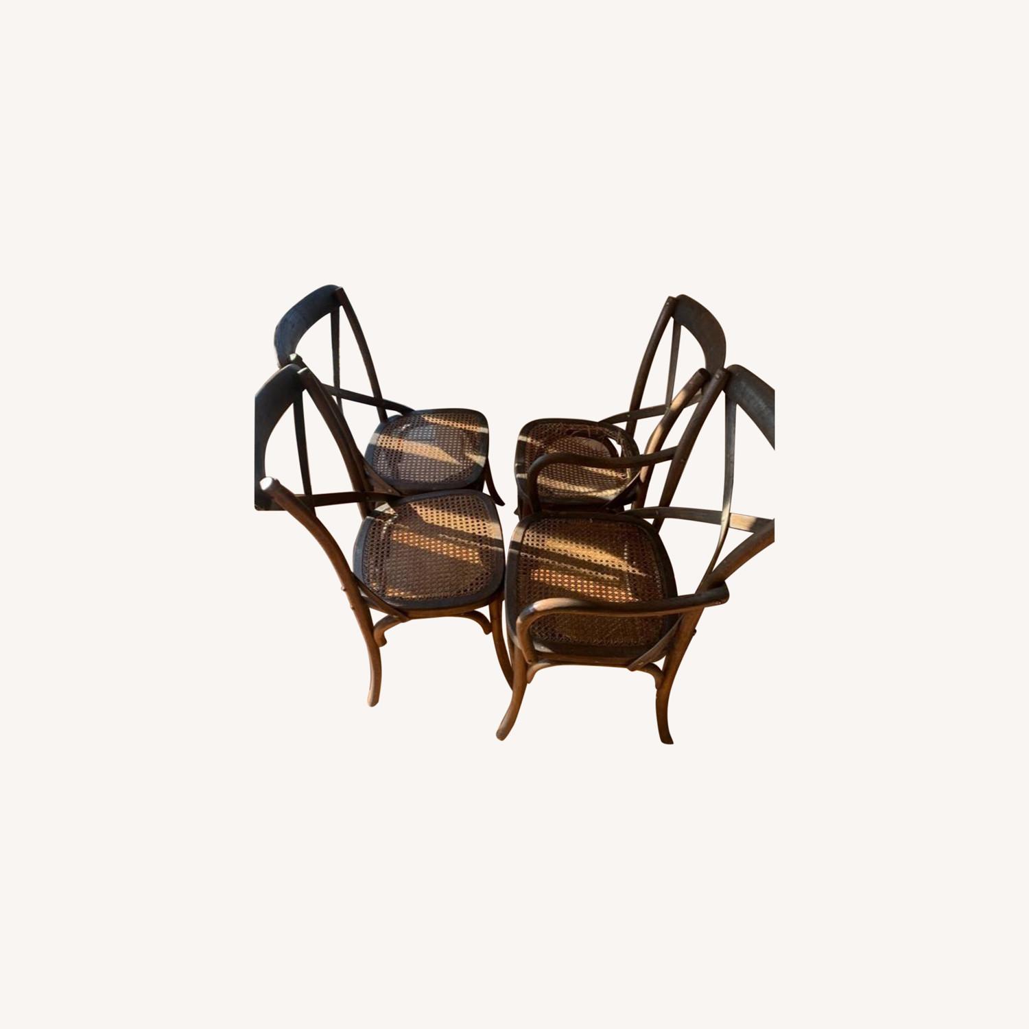 Seller's Notes:Pottery Barn dining room chairs 3 regular chairs & 1 with arms 1 chair seat needs to be re-cained