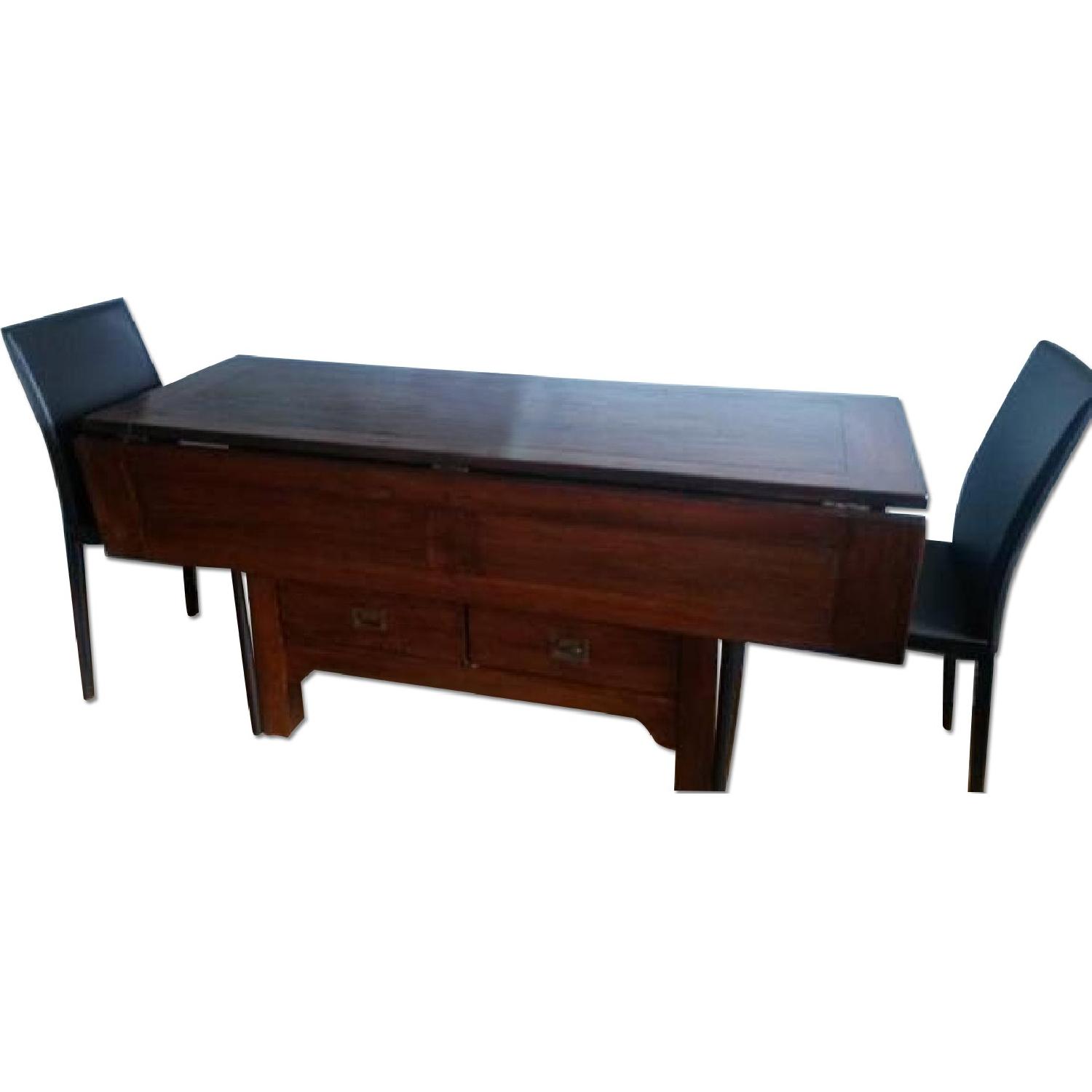 Seller's Notes:Beautiful Pottery Barn Dining Table with two leaves that fold flat and two storage drawers underneath. Table is 63"long x 25" wide with the leaves folded and 45" wide unfolded. Perfect for a small space.