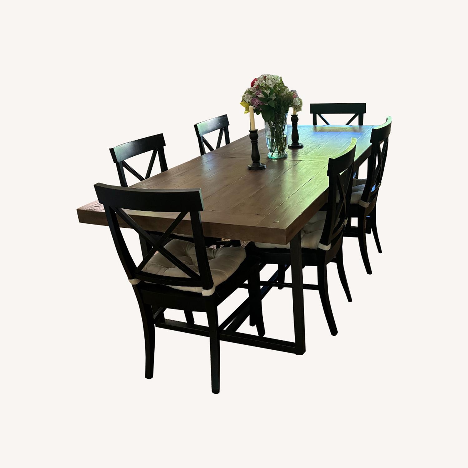 Seller's Notes:This table is wonderful! It includes 2 leaves, which have never been used. We are including 8 Pottery Barn Chairs as well which are black. We love this set which has been used for formal dinners only and not on a daily basis. We are selling our home and downsizing to a place where our lovely furniture does not fit unfortunately. We also have a small Pottery Barn buffet cabinet and mirror that is black as shown in the photos available as well for an additional $200.