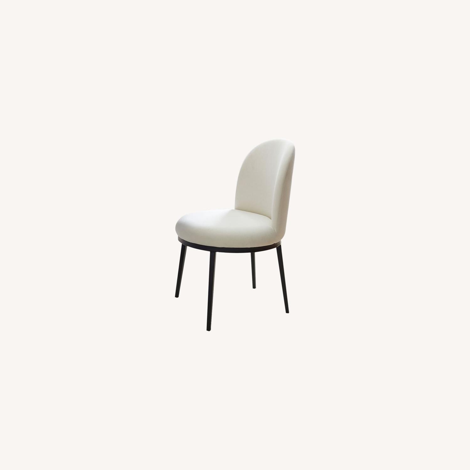 Seller's Notes:Inspired by classic mid-century modern designs, our Emily Chair lends a clean-lined look to your dining space. Crafted with a metal frame and elegant, tapered legs, it features a cushioned, rounded seat and curved back that add softness and cradling comfort to the structured silhouette. Seat and back are tightly upholstered in 100% polyester; filled with foam and polyester batting. Upholstery is finished in a park weave in Ivory. Frame is expertly crafted from metal. Powder-coated finish in Antique Bronze. Imported. SKU:530297